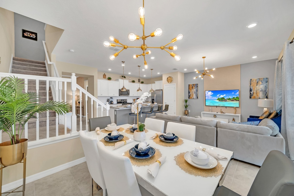 Amazing Brand New Modern Luxurious Home at Encore Resort Reunion. PET-FRIENDLY & Minutes to all Theme Parks. BRAND NEW HOME. Private Pool & Spa / Game Room / Movie Theater / Gym / Massage Chair / Fireplace / PS5 / Board Games & Much More. Embrace the extraordinary and book your stay at our home, where luxury, entertainment come together for an unforgettable vacation experience. ** Please review the rules before booking. Waterpark access is not included. **