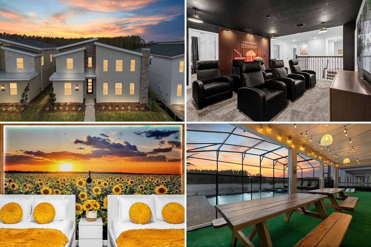 Amazing Brand New Modern Luxurious Home at Encore Resort @ Reunion. PET-FRIENDLY & Minutes to all Theme Parks. BRAND NEW HOME. Private Pool & Spa / Game Room / Movie Theater / Gym / Massage Chair / Fireplace / PS5 / Board Games & Much Much More Embrace the extraordinary and book your stay at our home, where luxury, entertainment come together for an unforgettable vacation experience. ** Please review the rules before booking. Waterpark access is not included. **