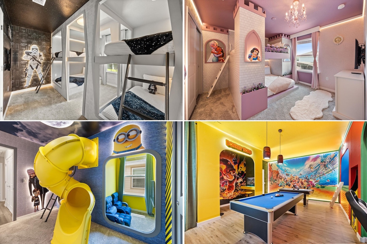 游戏和影音室、城堡双层床、泳池和水疗中心