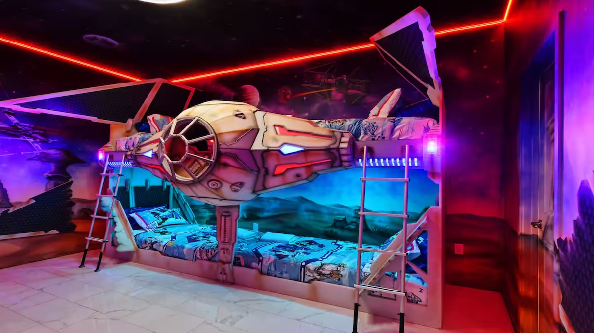 Give your family a stay they’ll never forget! Kids can rule their own Frozen kingdom or battle in a galaxy far, far away, while adults unwind after action-packed park days. ✔ Themed kids’ rooms – Frozen castle & intergalactic escape ✔ Private splash pool for a refreshing break ✔ Spacious & modern layout for families & groups ✔ Prime location near Disney, dining & top attractions Don’t miss out—book Let It Go Galaxy before it’s gone!