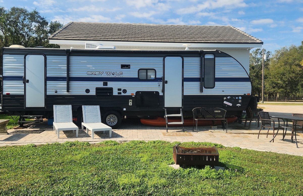Experience affordable private luxury in this newer destination-style RV, permanently placed on our quiet, tree-filled 1-acre estate in Apopka/Longwood. Tucked away behind a private gate, it’s a serene hideaway that still puts you close to everything. Just 35 minutes from MCO, 25 from Disney & Universal, and under 10 to Wekiva Springs State Park—this spot is perfect for guests looking to explore both natural wonders and world-class attractions. Grill and beach chairs available upon request.