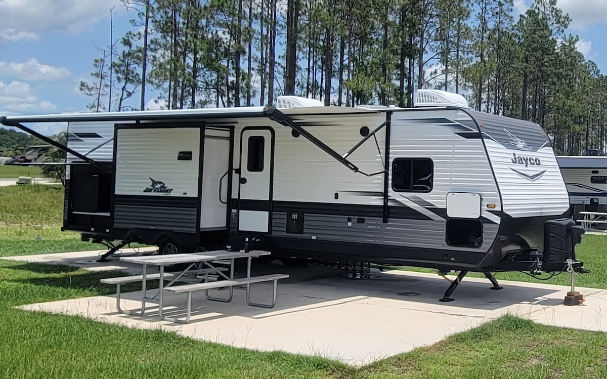 Experience affordable private luxury in this newer destination-style RV, permanently placed on our quiet, tree-filled 1-acre estate in Apopka/Longwood. Tucked away behind a private gate, it’s a serene hideaway that still puts you close to everything. Just 35 minutes from MCO, 25 from Disney & Universal, and under 10 to Wekiva Springs State Park—this spot is perfect for guests looking to explore both natural wonders and world-class attractions. Grill and beach chairs available upon request.