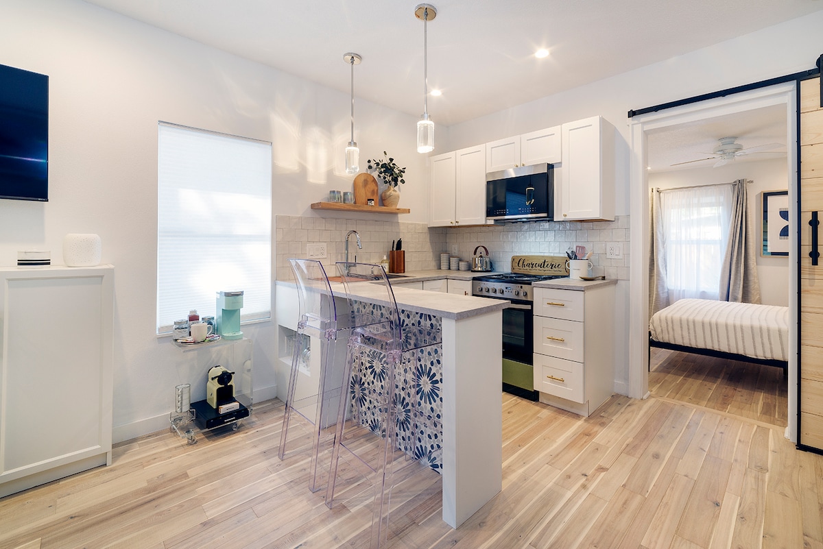 Best location in Orlando. No need for a car. This beautiful, historic 1947 garage apartment is a 5-minute walk to Lake Eola, and within walking distance of many lovely cafes, restaurants, and bars. We are very proud of our little guesthouse behind our home. We would love to host you and show off our beautiful city. Driving distances to major attractions: - Dr Phillips Center || 5 min (1.2 miles) - Amway Center || 5 min (1.5 miles) - Universal Studios || 20 min - Disney || 30 min