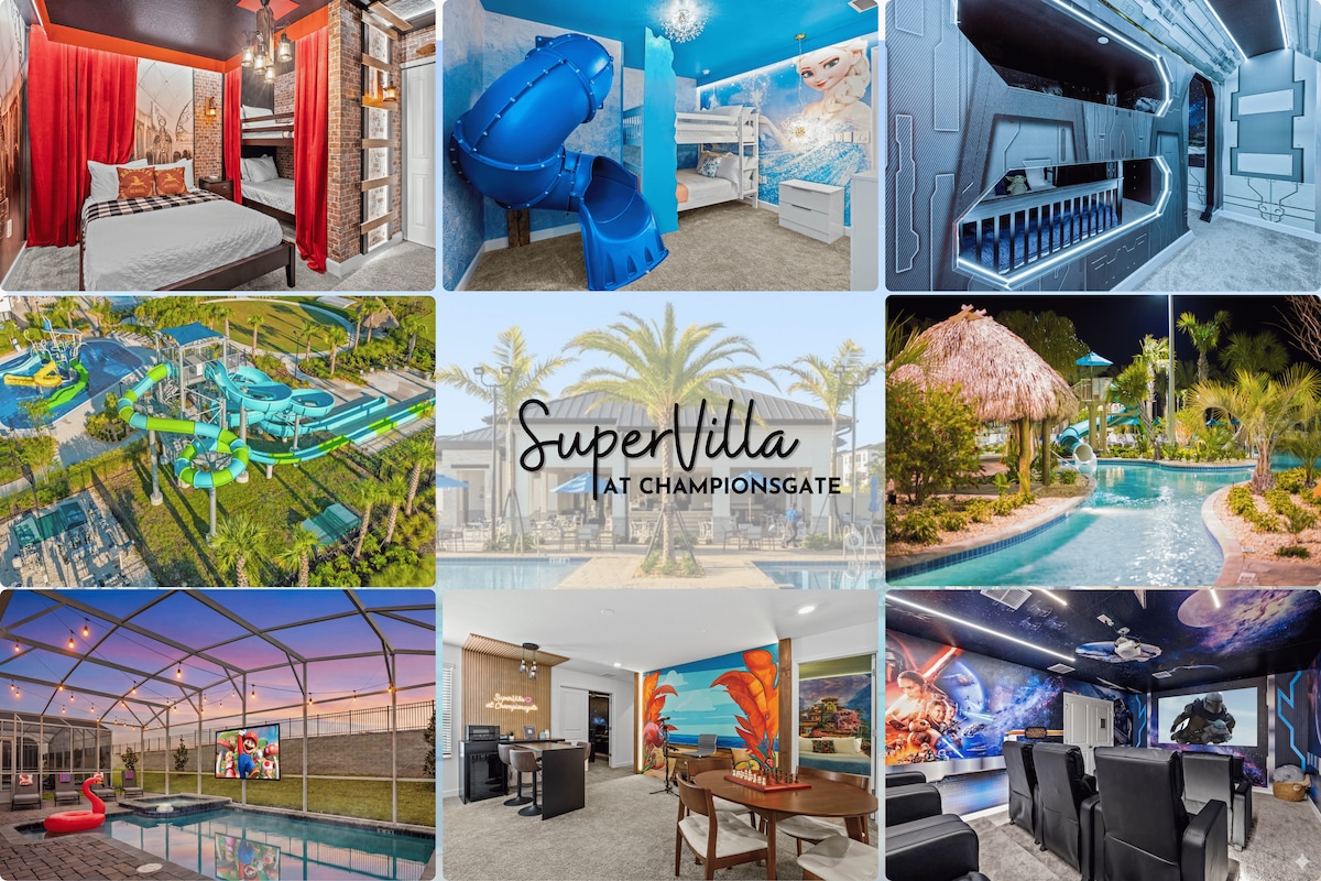 Make memories to last a lifetime in our luxurious 9-bedroom home (sleeps 24) at Orlando's premier vacation community. Enjoy your own Star Wars game room, private pool (heated at no extra charge*), and hot tub. Our 100% Five-Star rating from previous guests and our generous cancellation policy means you can book with confidence. Only 15 minutes to Disney and just a short walk to a fabulous resort clubhouse with free access to a lavish pool, kids waterpark, restaurant, playground, gym, and more!