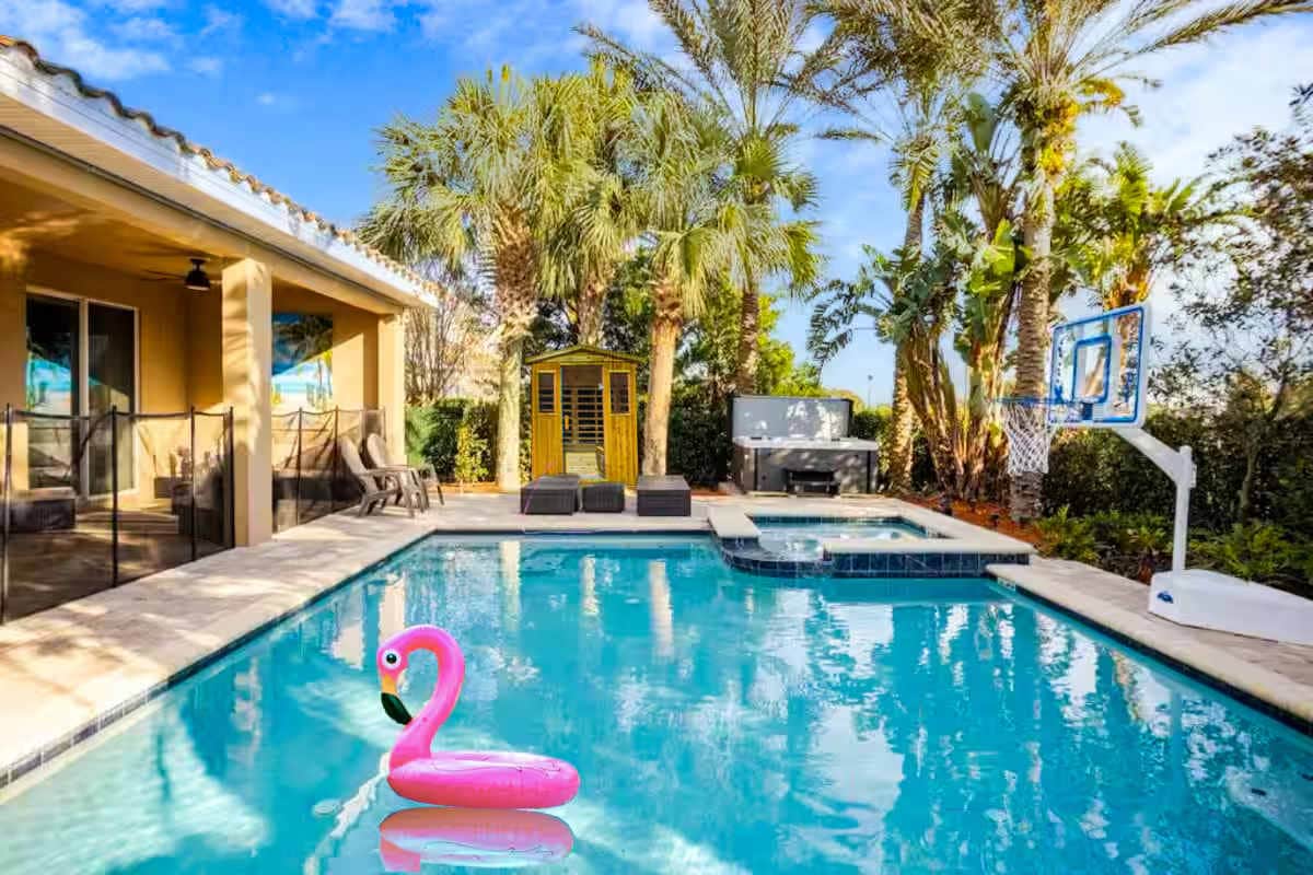 Close to all major attractions, and airport sits this private villa. It has a little something for all ages! Your family can play in the pool or relax in the hot tub. Enjoy fun game nights with a cabinet full of games, or play a game of basketball, pickleball, or tennis right outside our pool. Fun on the playground or enjoy the clubhouse gym. All of your needs for the beach trips or the ball games. All of your baby's needs are covered as well. Ask about Stroller and cart rentals. We have it all