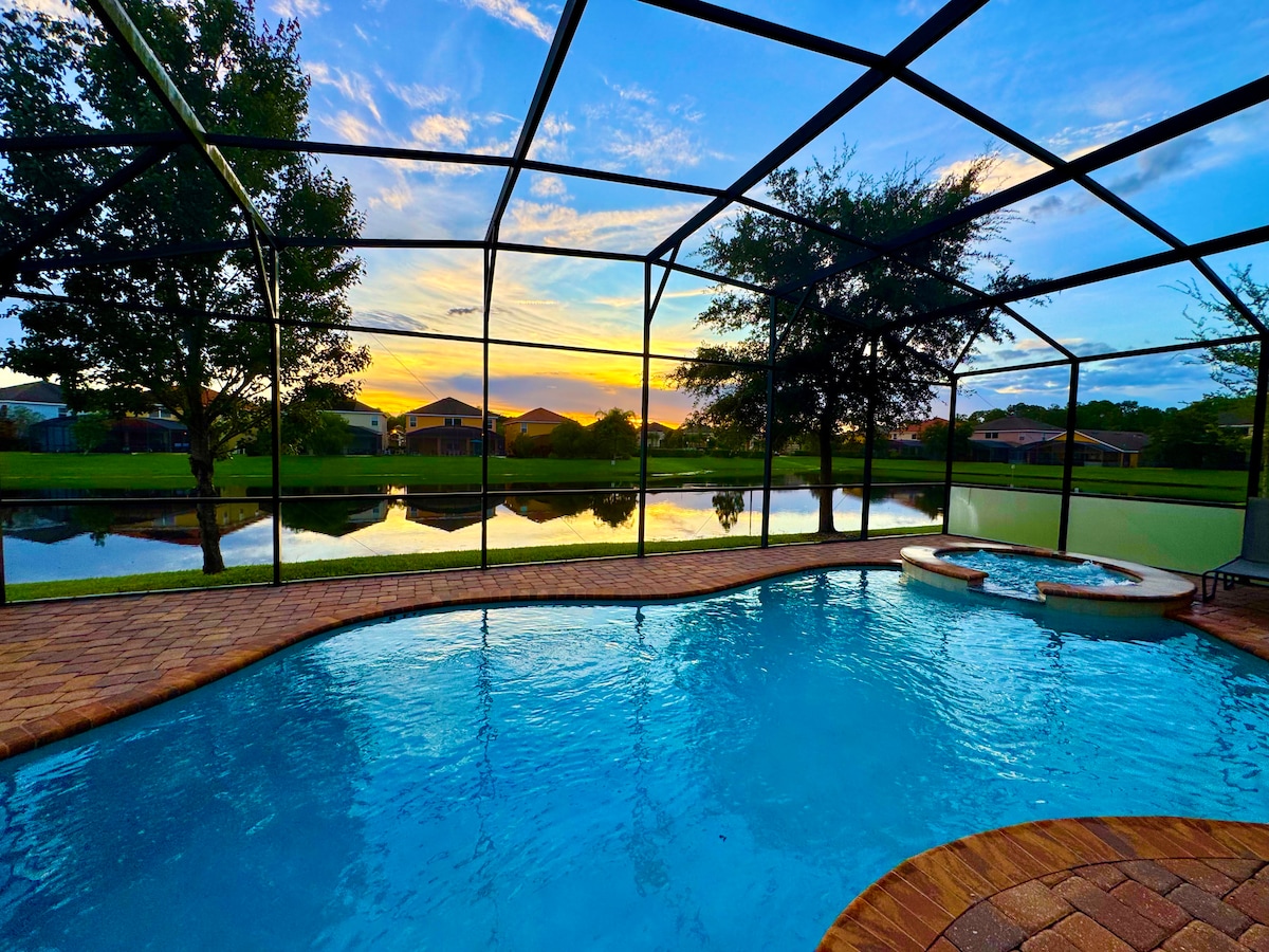 Waterfront LUX Disney Villa Sleeps24•Pool•Spa•GmRm