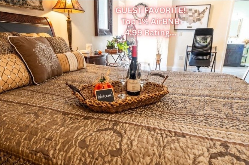 255 sq ft studio- queen bed, workspace, kitchenette, large bathroom, private yard area & entrance. This gem is clean & quiet w/ complete blackout in bedroom. Bathroom has tons of natural light & 3 shower heads. There’s TV w/Roku, microwave, fridge & Keurig. Comfy, peaceful at I-4 Par exit # 44. $20 pet fee No cleaning fee. Universal 11 mi Kia Center 3 mi Airports (MCO) (SFB) 23 mi Orlando City Soccer 4.6 AdventHealth Orlando 0.6 mi Orlando Health, Arnold/Winnie Palmer 3.8 Rollins College 1.9