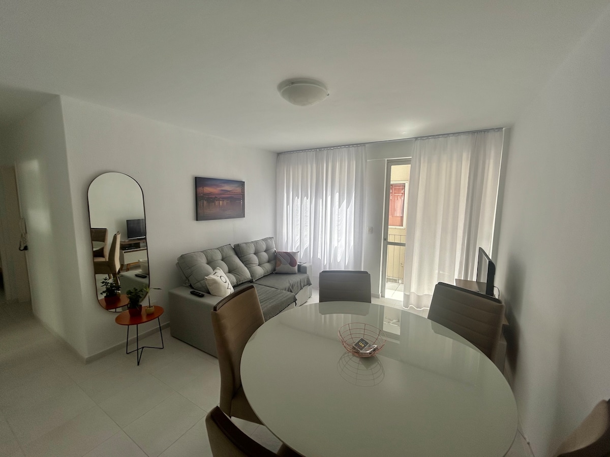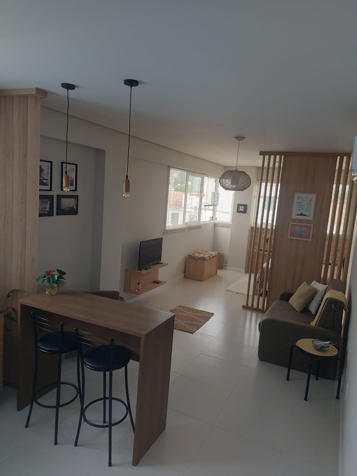 Apto completo e funcional ideal para uma pessoa ou casal, também podendo acomodar mais 2 pessoas no sofá-cama da sala, são 28m² super bem distribuídos com muito conforto e aconchego. No quarto temos uma cama de casal, ar condicionado e espaço para acomodar seus pertences. A cozinha é bem completa, tendo tudo que é necessário. Localização de fácil acesso tanto para ilha quanto para BR101. Vaga de garagem livre no térreo. Acesso ao condomínio através de uma caixa com senha onde guardamos a chave.