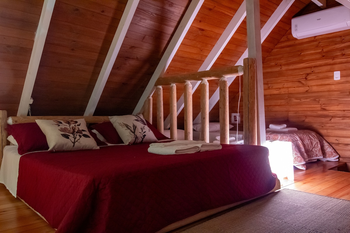 Esta é a Cabana Quero-quero, construída em materiais de demolição e tipicamente serrana. Ela possui 2 quartos, um banheiro e ampla sala com lareira a lenha. As camas de tamanho King Size podem ser revertidas para 2 camas de solteiro, tornando a cabana perfeita para um grupo de amigos ou uma família. Reserve agora e tenha uma experiência tranquila em Urubici.