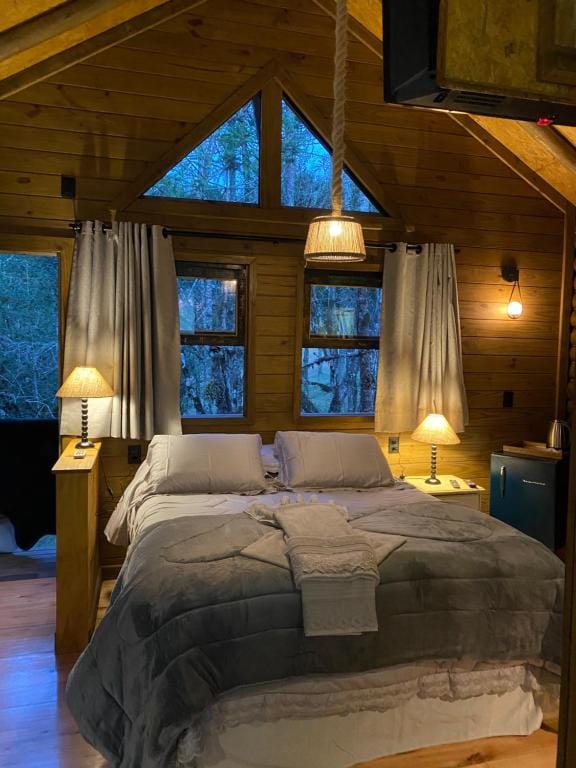 Este lugar único e cheio de estilo é o cenário ideal para uma viagem inesquecível. Você vai adorar a vista encantadora da Cabana Curucaca, o contato com a natureza e o conforto da acomodação. Ela acomoda duas pessoas, com cama queen, calefator, aquecimento de água a gás em todos os pontos, ar condicionado, cozinha de apoio e deck privativo.