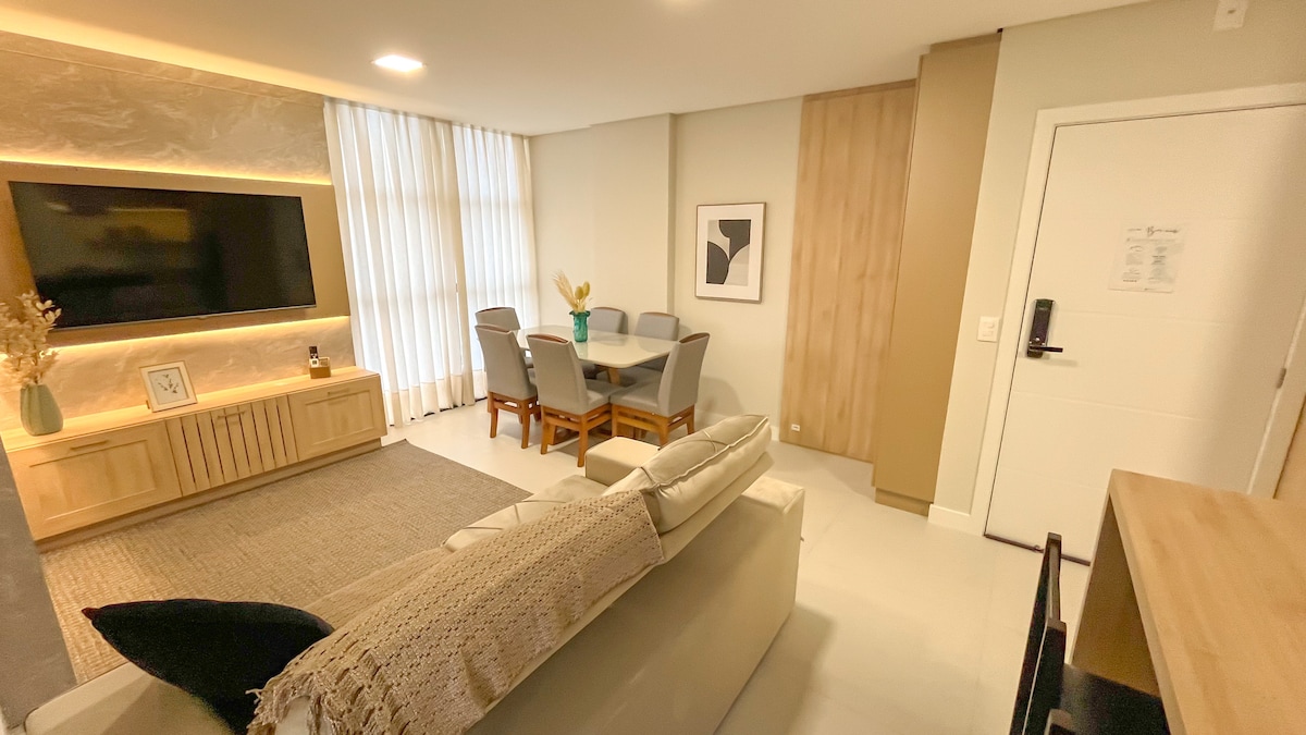 Lindo apartamento cheio de estilo em condomínio fechado px. ao centro de Criciúma. Acomoda até 6 pessoas em três quartos climatizados com Split, 1 colchão de solteiro extra. Possui Smart-TV c/ Streaming e + de 40 mil canais, séries, esportes e filmes. Wi-fi grátis, ar-Split e ventilador. O Ap é equipado com os principais eletro-eletrônicos úteis e espaço para churrasco. A garagem é privativa e fornecemos roupas de cama, mesa e banho, produtos de limpeza e higiene pessoal. Ótimo custo-benefício!