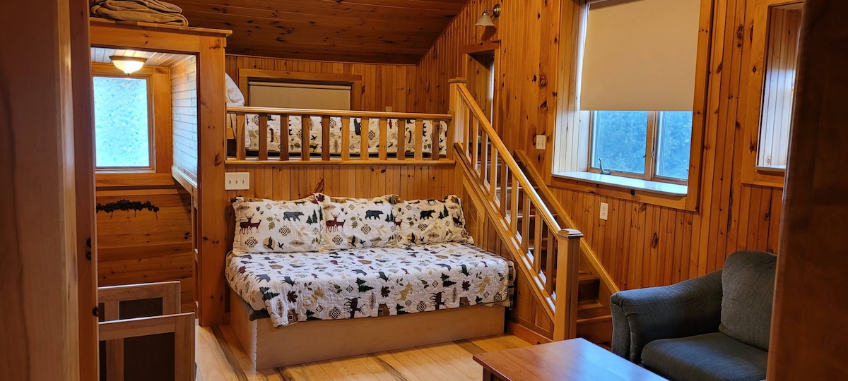 Relax with family or friends at this peaceful place to stay. Enjoy a 480sqf. Studio cottage on Lake Ontario. The cottage consists of an outdoor area, a queen size bed, a pull-out sofa, a 40inch TV, dining area, full bathroom, and a kitchen. Enjoy the view, a nice swim, have a fire, or use the grill. You can bring yard games to play in the yard, or there is a small natural boat ramp to put in your own kayaks or canoes. There are friendly dogs free roaming the area.