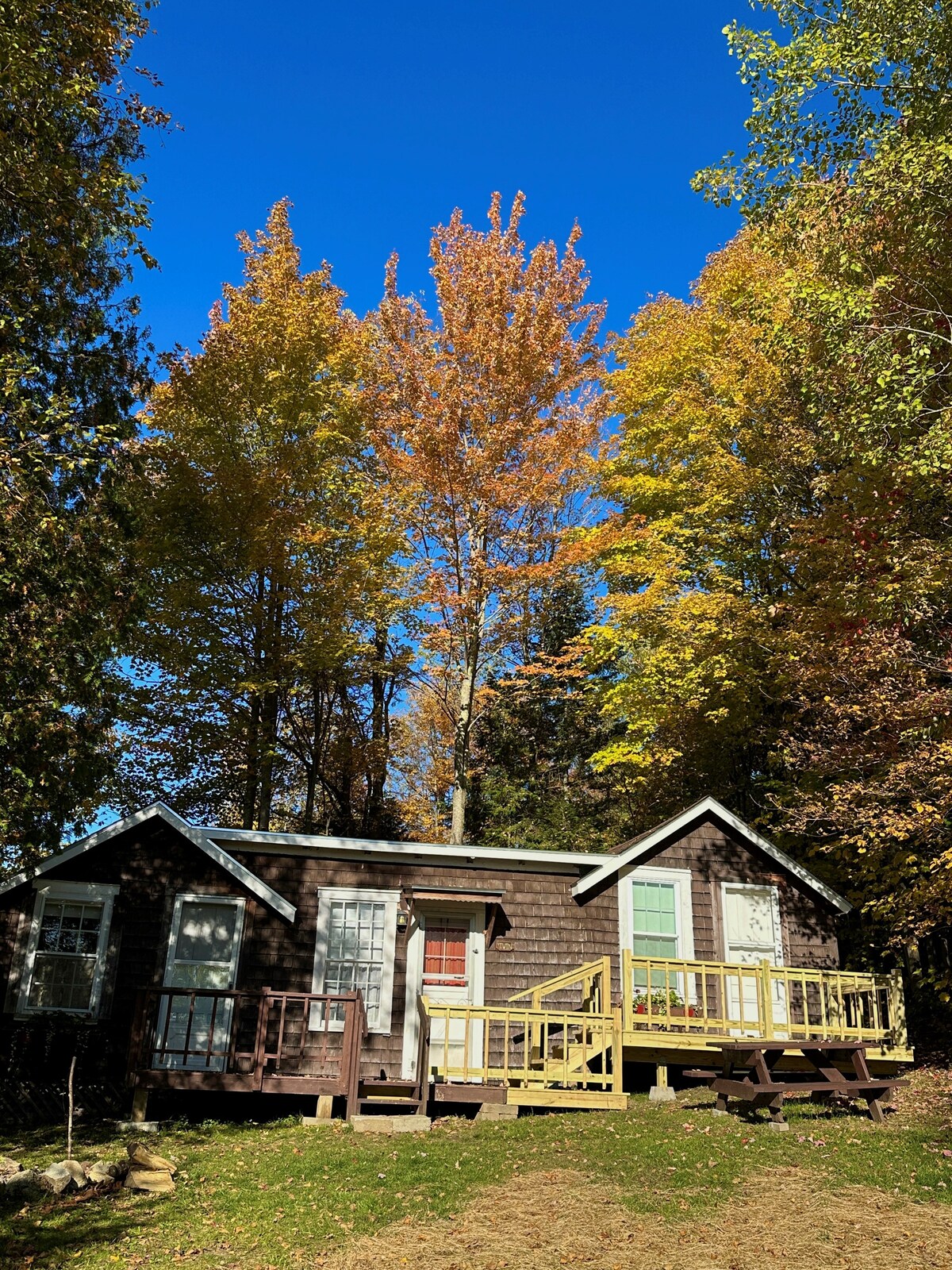 Enjoy a peaceful escape in this sweet little newly renovated and stylishly minimalist cottage with stunning water views and private beach access on beautiful Shadow Lake. An ideal space for a solo writer's retreat, a romantic weekend, or a family getaway. In the evening, stargazing from the secluded back deck is absolutely mesmerizing and in the morning, it's the perfect spot to savor a quiet cup of coffee. In the winter enjoy the cottage’s coziness after a day of skiing!