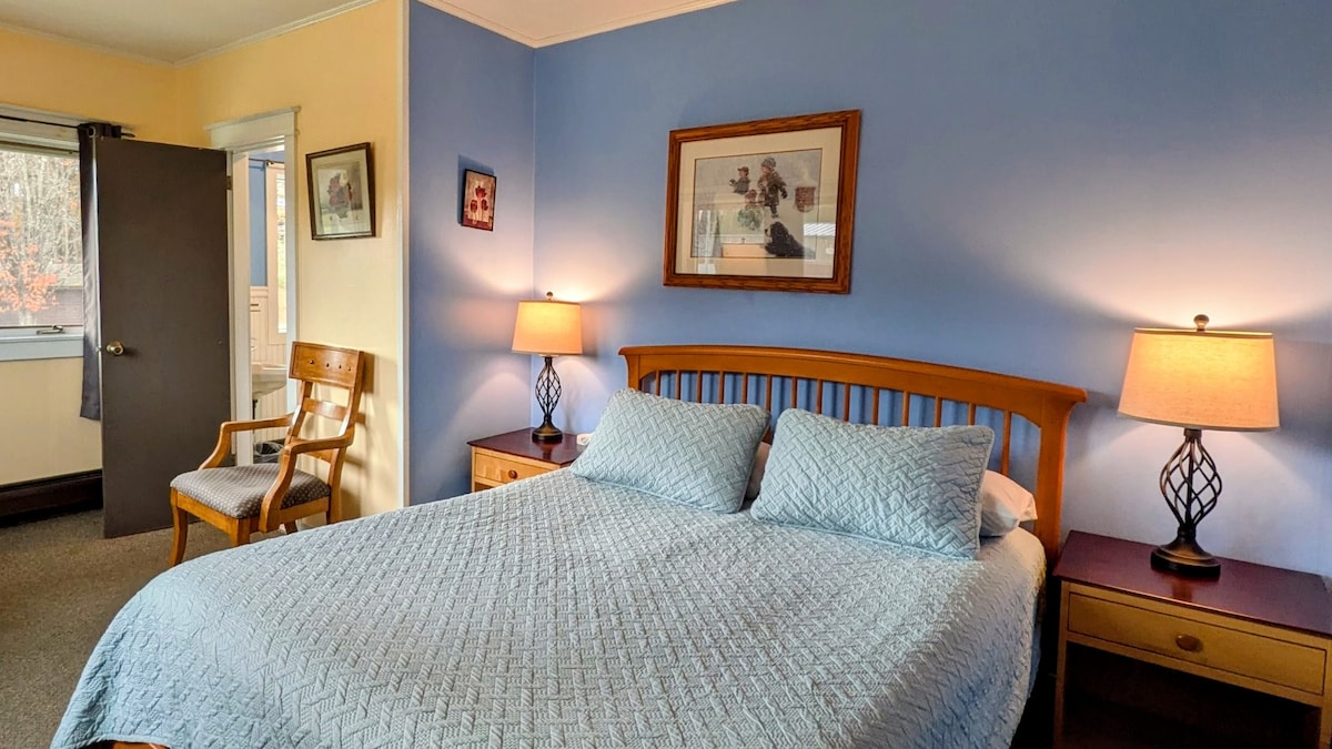 Take the stone path to your private suite for the evening. The suite is attached to the main house, but has its own entrance and private patio for your enjoyment. We are located on Darling Hill, adjacent to the Chapel and directly on Kingdom Trails. It is a peaceful setting with a hot tub and sauna for after your day of outdoor adventure. We are approximately 10 minutes from Burke Mountain and a 1/4 mile from the VAST trail network.