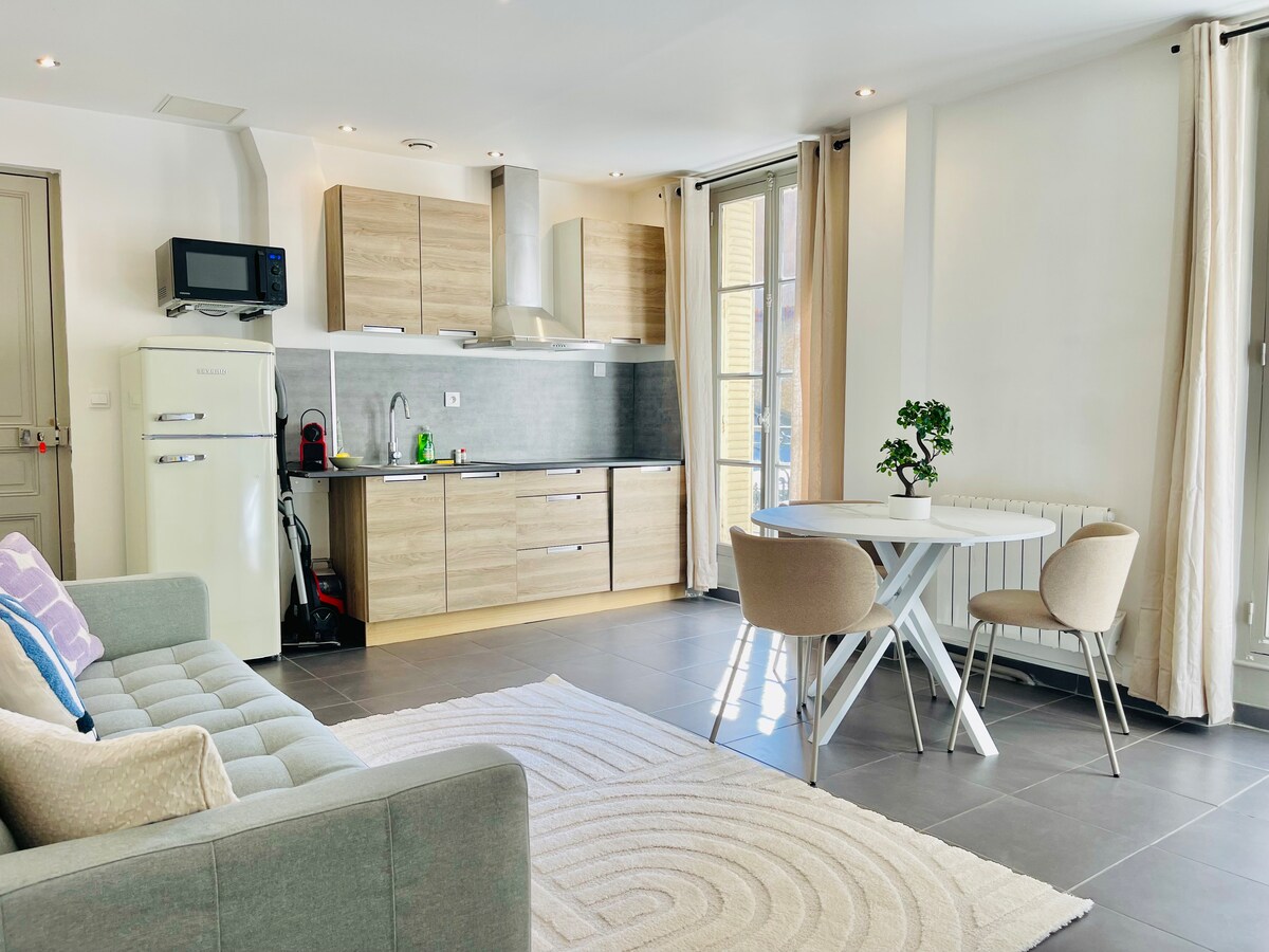 🏰 Fully renovated T1 apartment for 2 guests. Located in a historic building, it blends old-world charm with modern comfort. 🎯 In the heart of Orléans' historic center - Place du Martroi 🚊 8 min walk from the train station, 200m from the tram, and 100m from public parking. 🏰 Steps from the Cathedral, Place du Martroi, lively terraces, and the Loire River banks. 🏛️ Only 1h by train / 1h30 by car from Paris, and 45 min from the stunning Loire Valley castles.