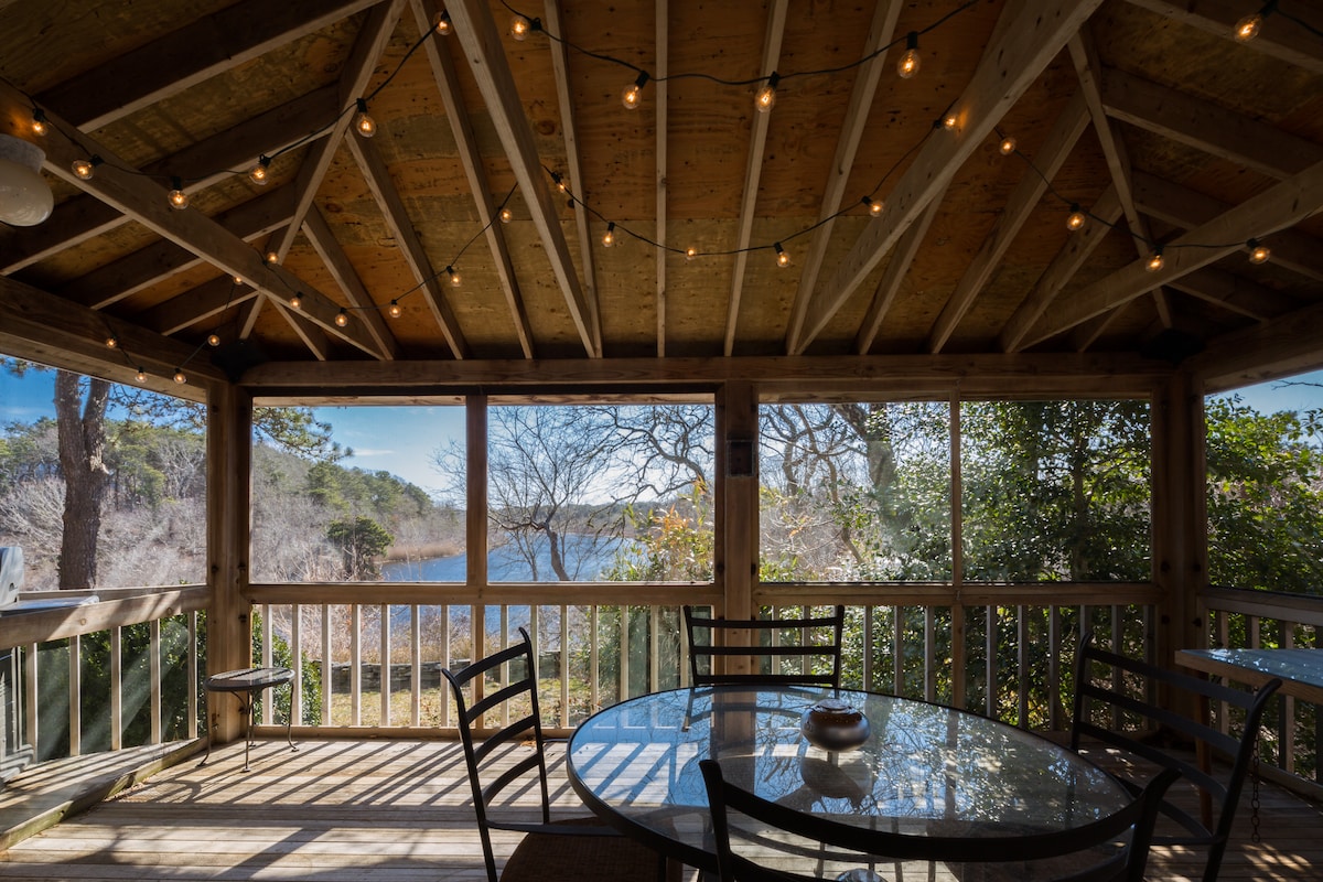 Come enjoy our family vacation home! A beautiful, serene escape perched above the salt marsh - with lovely views from every room, and a huge 1,000 square foot outdoor deck. Sleeps 8 comfortably. A 10-minute drive to charming Wellfleet center, and just an 8-minute drive to ocean beaches. NOTE: BEDSHEETS, LINENS & BATH TOWELS ARE INCLUDED IN PRICE! This is our family ''getaway'' - a place of treasured memories. We hope it can be the same for you!