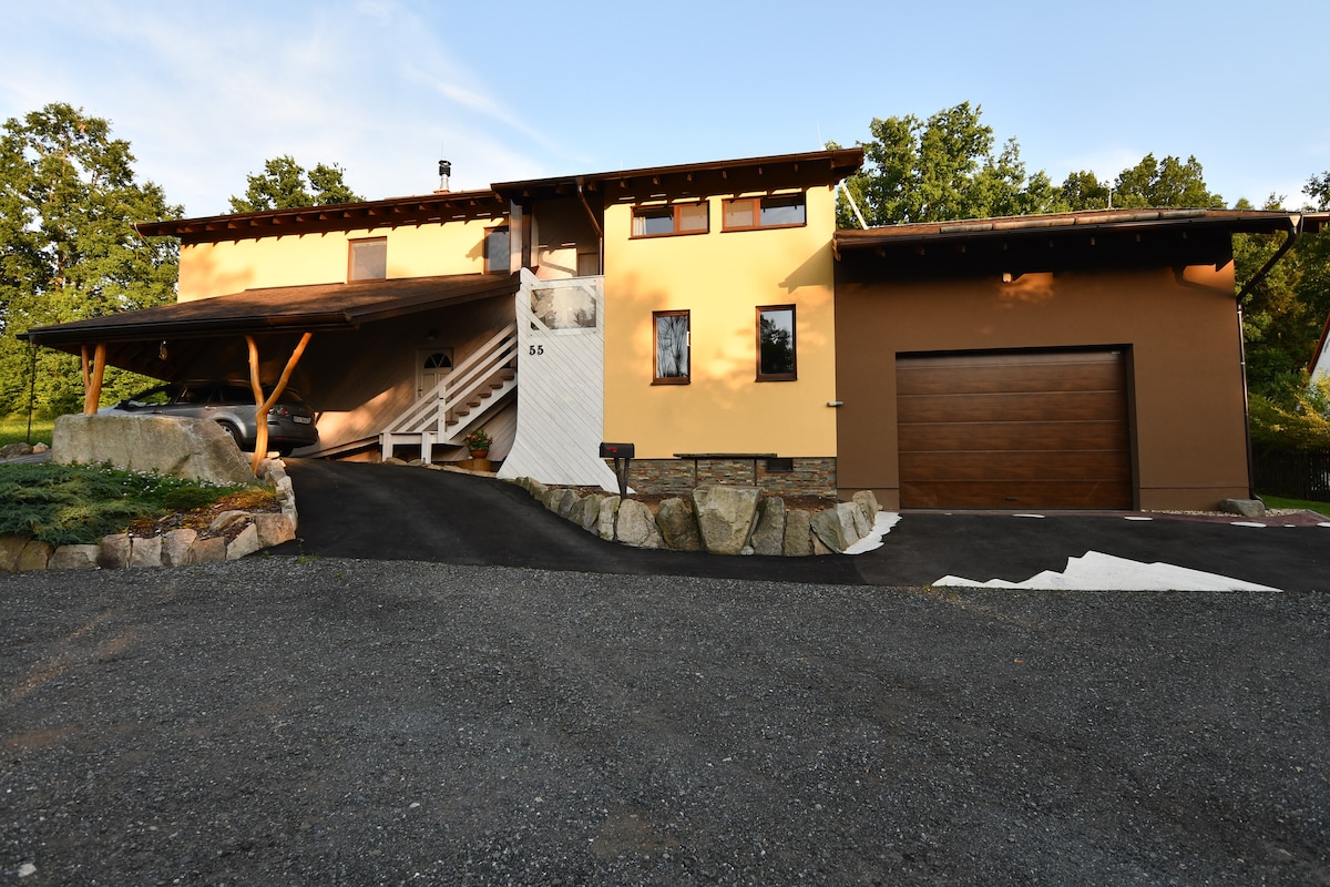 Our holiday home near Orlík, just a short distance from the castle, is ideal for families with children. While it may be snowy outside, you won't be bored here! The living room has a children's corner, upstairs there is a spacious children's room with a pile of toys. The large common room with a home theater will provide you with lots of fun. We also have a high chair and a travel cot for the little ones. And when you get tired of the warmth of home, walk around in lovely country