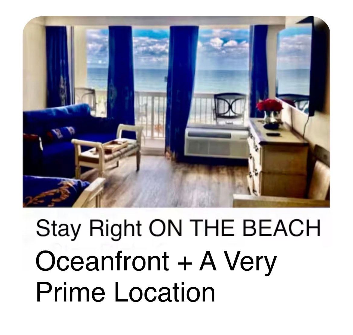 Ocean front Studio Condo with Beautiful View!, on the 4th floor ocean side of the 5 story building. Wide Shared balcony & chairs overlook the ocean & sun rise. Comfortable stay at great value. Ideal for guests who love a beach and ocean view. Some of resort amenities recently opened after storm damage: **Open Amenities • 8:00 AM – 8:00 PM • One Outdoor Pool • Indoor Pool • South Spa • Fitness Center / Gym • Sauna **Primary guest registration with ID required through guest portal.
