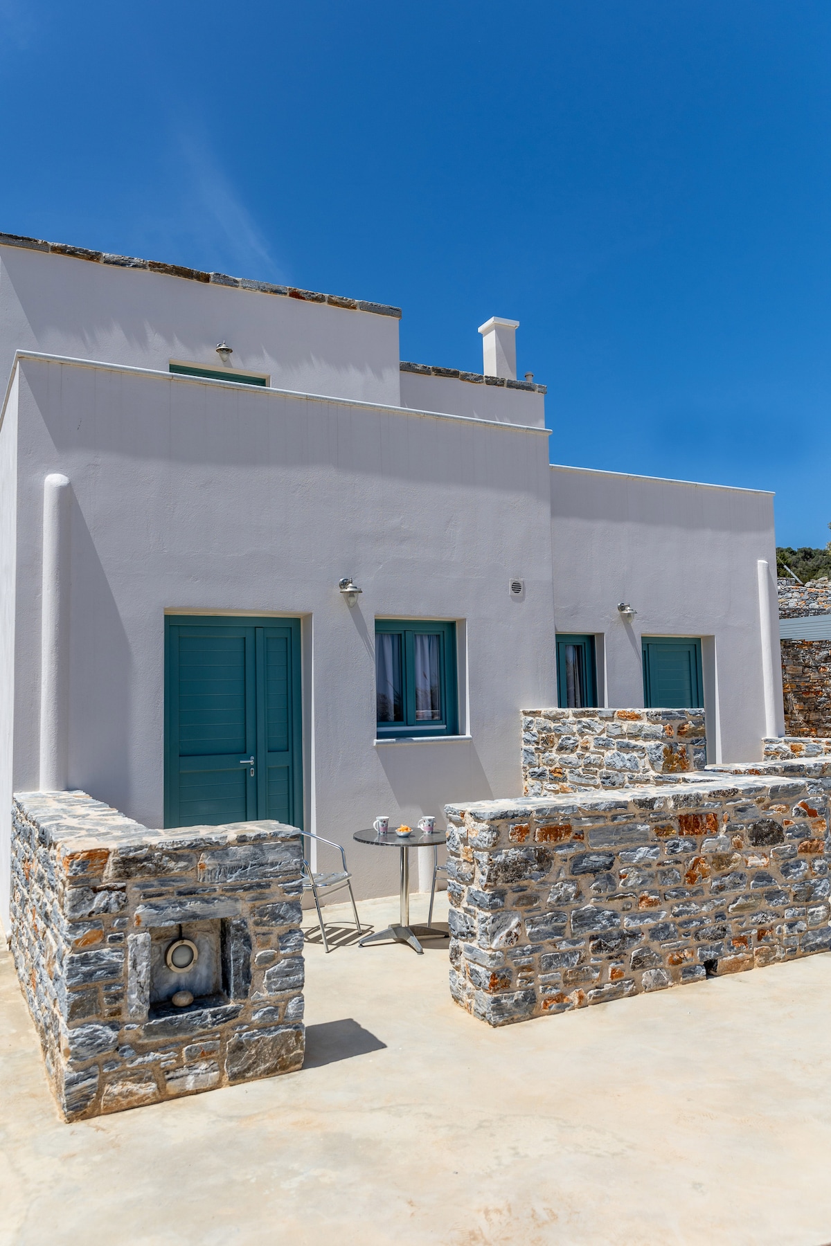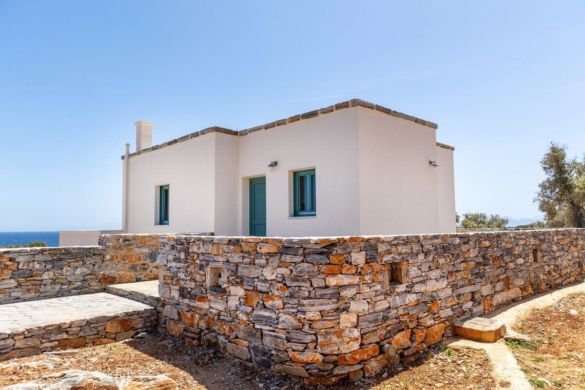 For relaxing & enjoyable vacation Our new build holiday house is in a calm and unique atmosphere with amazing sea views and magical sunsets. It has two bedrooms, two bathrooms, living room, kitchen and a huge veranda. The house is renovated in a traditional way with stones, wooden ceilings, old details etc. At the same time it has all the modern facilities to make your holiday easy and comfortable.