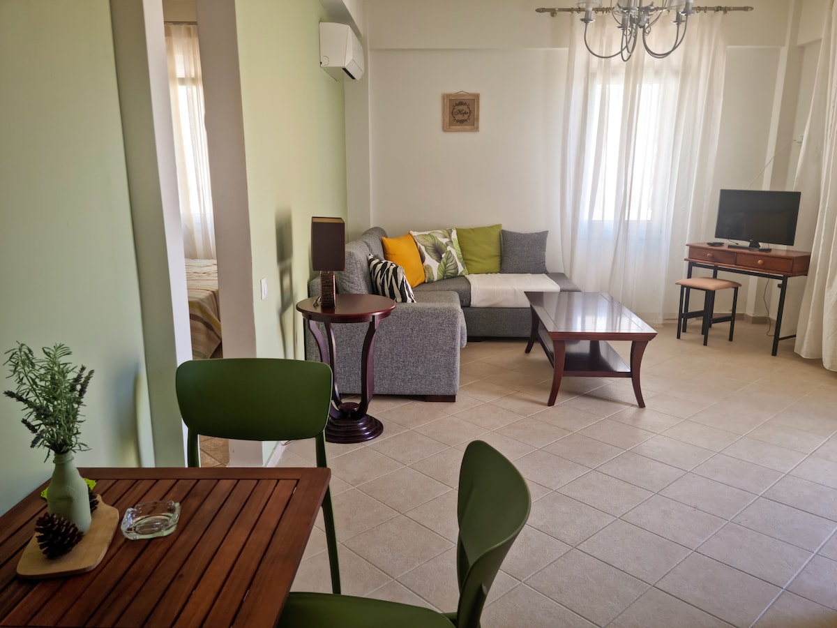 Ideally located in the heart of Chora, this charming apartment is just steps away from beautiful beaches, cozy cafés, museums, restaurants, local markets, and lively bars — all within walking distance, no car needed! Perfect for families, this friendly island town offers a warm and relaxed atmosphere for all.