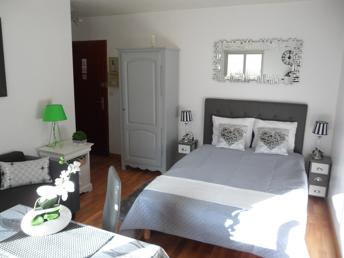 studio meublé entièrement rénové dans une résidence calme, proche du centre ville ( quartier belle époque) navette à proximité, situé au rez de chaussée Il est composé: - d'un parking extérieur privé - digicode, wifi - d'une entrée avec placard - d'un séjour ouvrant sur balcon (2 lits de 90, table, chaises, télévision) - petite cuisine ouverte (réfrigérateur, plaque, micro ondes, four, vaisselle) - salle d'eau ( douche vasque, WC, lave linge. Les animaux ne sont pas autorisés.