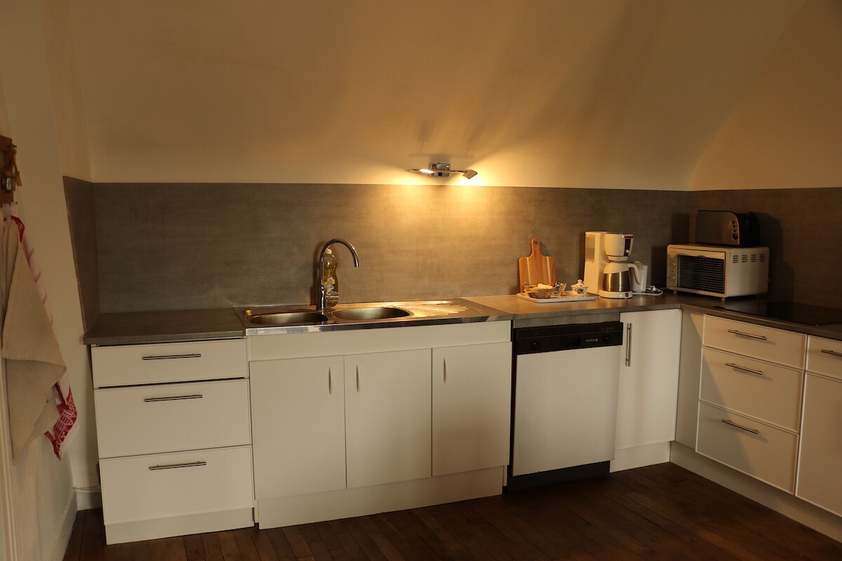 Venez découvrir cet appartement qui rendra votre voyage paisible. → Appartement COSY situé dans une résidence calme dans l'hyper-centre d'Alençon → 2 COUCHAGES avec 1 lit double et 1 canapé-lit double → TV pour se divertir → FOUR / MICRO-ONDES / LAVE-VAISSELLE et PLAQUE INDUCTION pour cuisiner facilement → Machine à café Tassimo, café, thé, chocolat sont présents afin de se sentir comme à la maison.