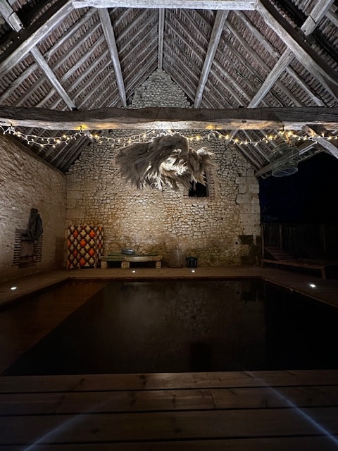 🌹 Cocon amoureux & bien-être dans le Perche 💘 Offrez-vous une parenthèse hors du temps dans cette suite aux inspirations vieux rose et bois brut, sublimée par une atmosphère douce et feutrée. Conçue comme une véritable love room, la Suite romantique Prova invite à un séjour privilégié à deux. Profitez d’une balnéo (bain à remous) et d'une double douche dans une ambiance propice à la détente. La suite possède un écran géant avec rétroprojecteur pour un moment ciné !