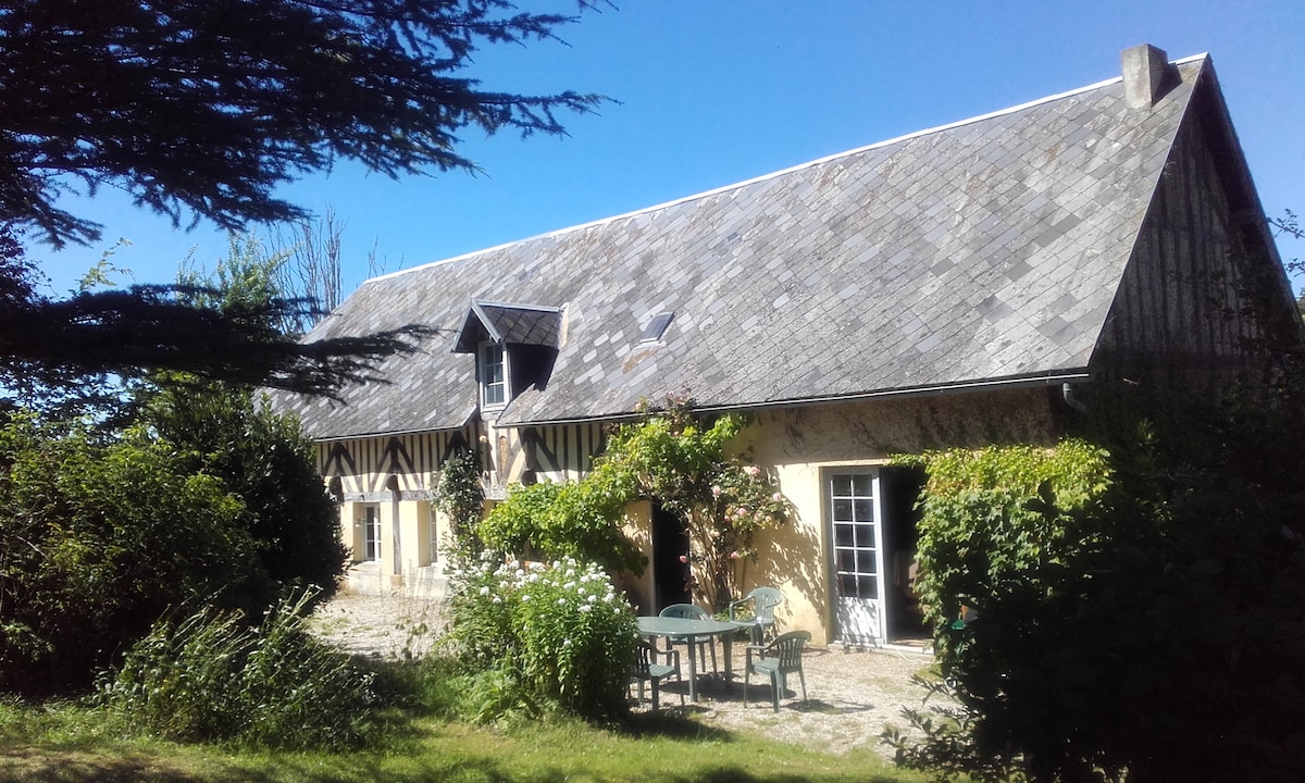 Spacious Normandy farmhouse - 5 large bedrooms and attic dormitory, sleeps up to 14 people. Free late check-out for weekend & most week long bookings unless stated otherwise. Confirmed on booking. Garden & field - fire-pit, barbecue and large games room with American billiards, table-tennis and table football. Also other games and outdoor activities. Indoor & outdoor eating for 14 people. Suitable for gatherings of family/friends in peaceful surroundings with no neighbours. Close to many sites.
