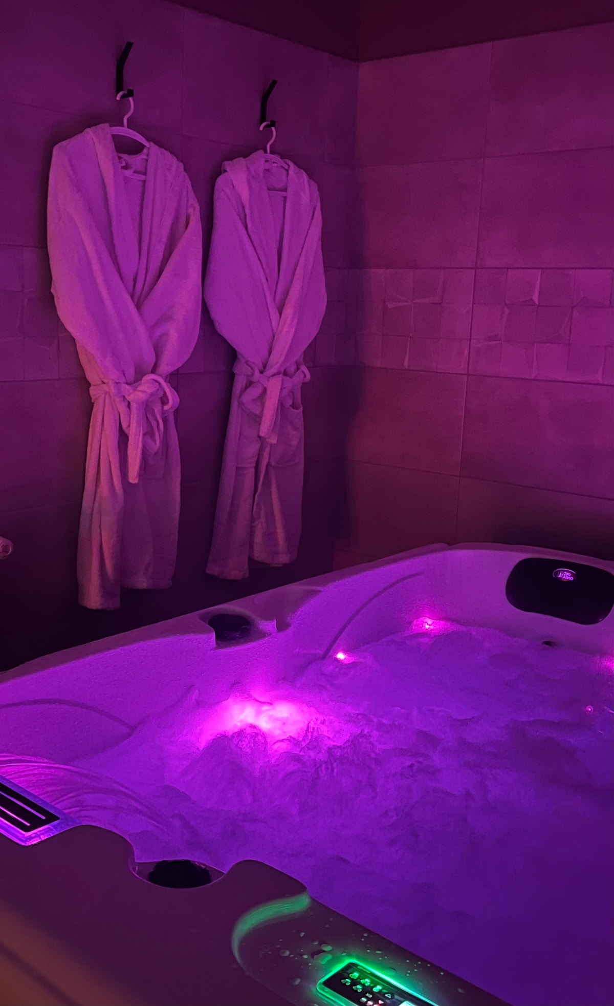 🌹 Cocon amoureux & bien-être dans le Perche 💘 Offrez-vous une parenthèse hors du temps dans cette suite aux inspirations vieux rose et bois brut, sublimée par une atmosphère douce et feutrée. Conçue comme une véritable love room, la Suite romantique Prova invite à un séjour privilégié à deux. Profitez d’une balnéo (bain à remous) et d'une double douche dans une ambiance propice à la détente. La suite possède un écran géant avec rétroprojecteur pour un moment ciné !