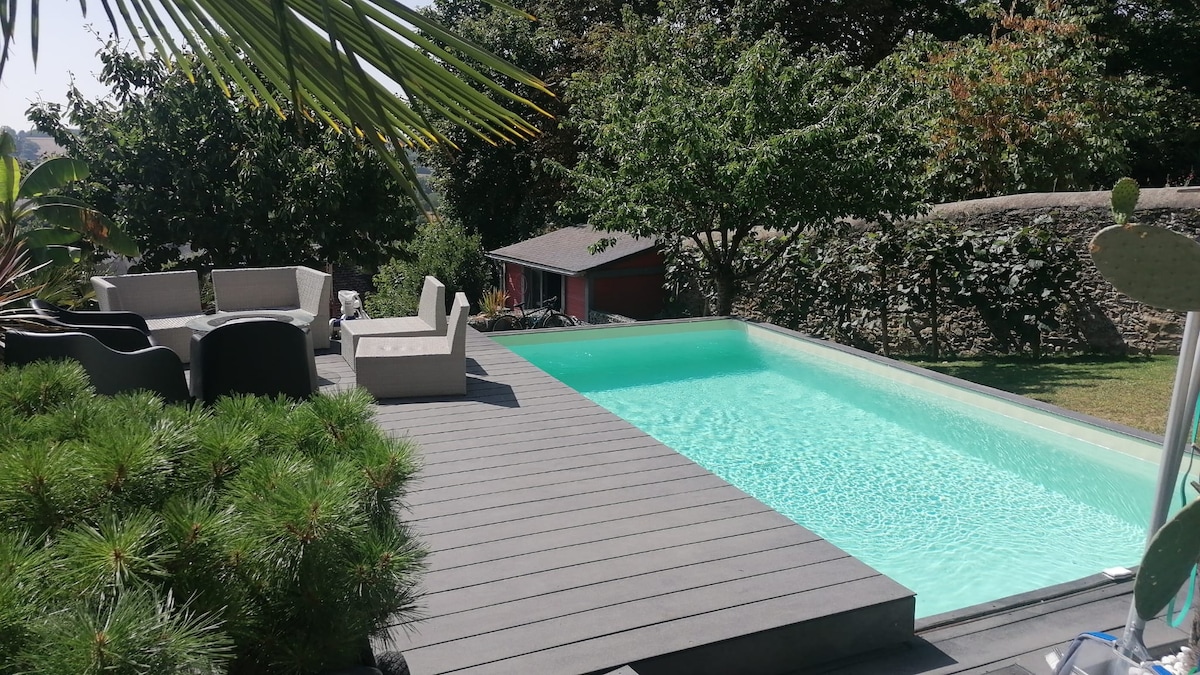 Maison de famille avec piscine, dans le Parc naturel régional du Perche. Tout confort, la maison a été entièrement rénovée en 2021. Au calme absolu, à l'orée de la forêt domaniale du Perche et entourée de prés occupés par des chevaux, la maison domine d'un côté un parc arboré et de l'autre un jardin avec piscine extérieure sécurisée chauffée de mai à août. La maison est à 10 min de Mortagne, 30 min de Bellême, 2h de Paris et 15 min de la gare de l’Aigle. Idéal pour un séjour en famille !
