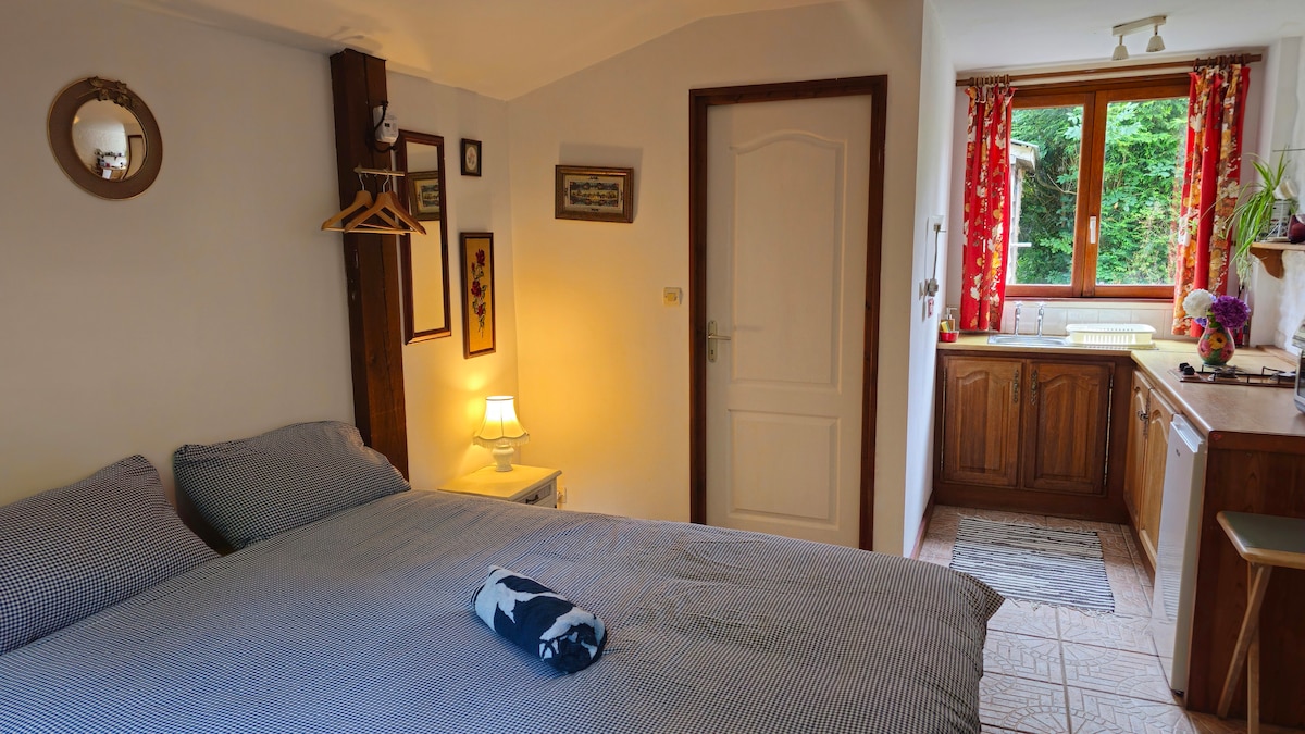 Welcome to Gite Des Roses, set within a 300 year old farmhouse surrounded by the Normandy countryside. Myself, my husband, our dog, cat and 5 free range chickens love it here. One dog allowed per stay. 2 on request. Dogs to be kept on a lead in garden. Our private one bedroom Gite has been fully renovated to a high spec in 2022 and is ideal for couples wanting a relaxing holiday yet only a 5 minutes drive to the nearest town with all amenities. Fishing lakes and 23km cycle path nearby