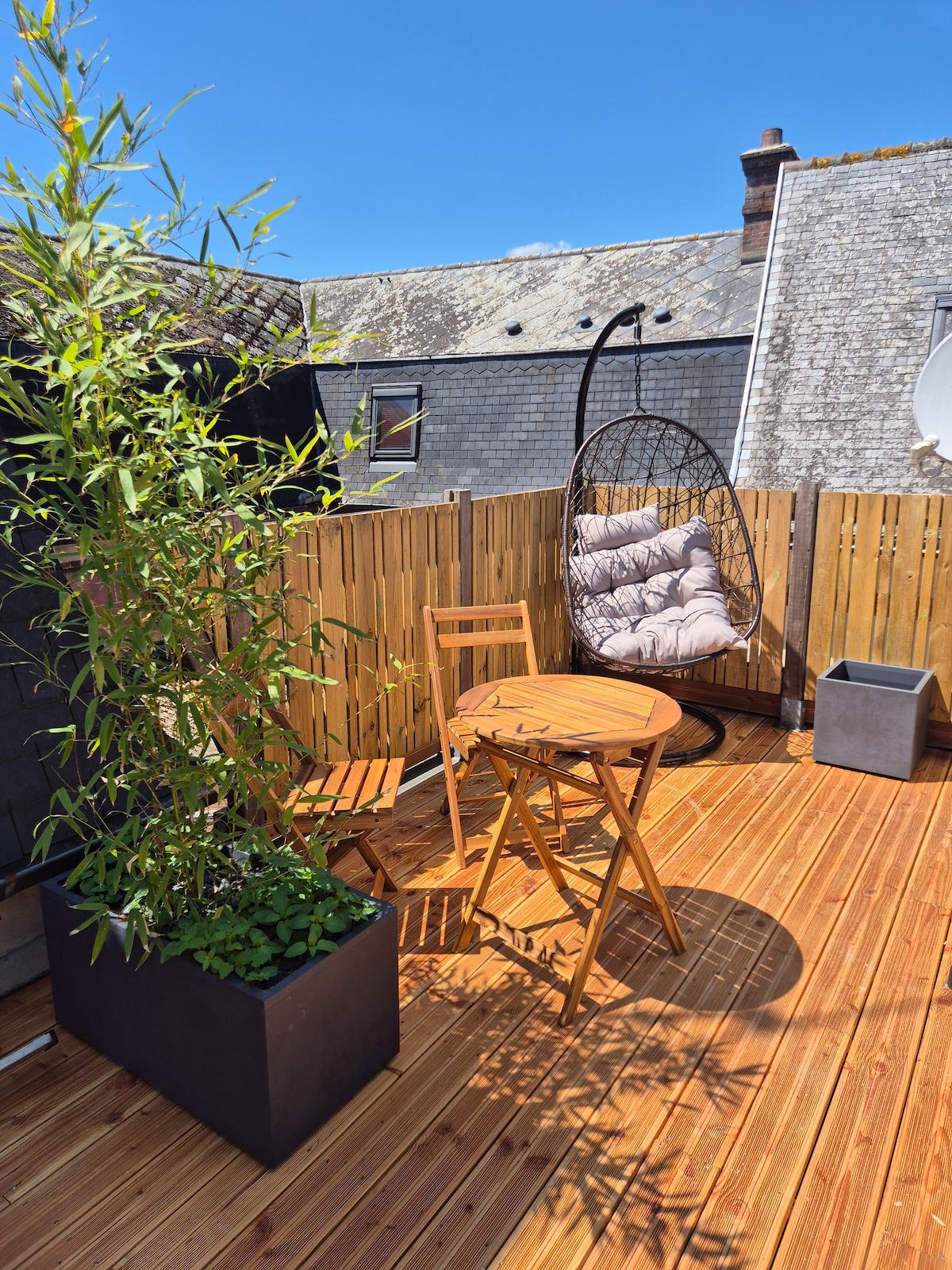 Découvrez notre suite romantique en plein centre ville de Conches-en-Ouche, entre Paris et Deauville, à 20 minutes d'Évreux. Située à proximité de restaurants et commerces. Un petit parking avec des bornes électriques à 100 m. Ce logement unique offre une cuisine-salon tamisée, une salle d'eau avec balnéo végétalisée et double douche. A l'étage, un espace détente avec sauna, transats et table de massage. Une chambre avec lit queen size et un grand miroir. ++ Balançoire et menottes de lit ++