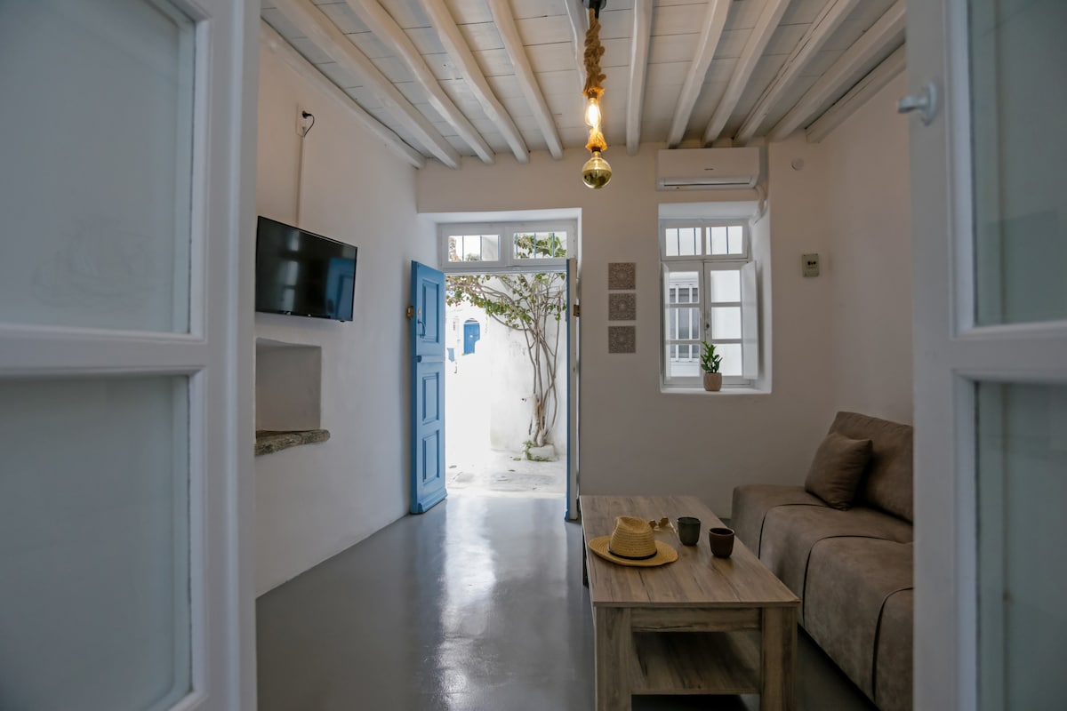 Blueisla Modern Mykonos townhouse! A house in the town with a private Parking. This newly renovated house is located in a tranquil area of the island and offers breathtaking views of the Aegean Sea. The house has all its necessary amenities upgraded and a terrace that gives a picture-perfect panoramic view of the Mykonos town, air conditioning that keeps the house ventilated even during the hot seasons of the year.