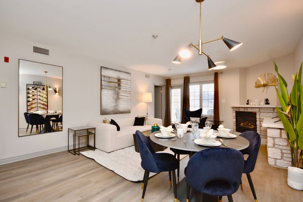 Sitting on top of Horseshoe Valley, this stunning and unique condo sets the stage for a memorable and cozy trip. This suite has it all! - Fully stocked kitchen - 6-person dining table - Pull-out couch + loveseat + lounge chair - Cozy fireplace - Comfortable king-size bed - 2-person soaker tub + shower - Private Balcony - Year-round indoor/outdoor pool with hot tub and sauna - Fully equipped gym Minutes away from Vetta Spa, Horseshoe Valley, golf courses and more!