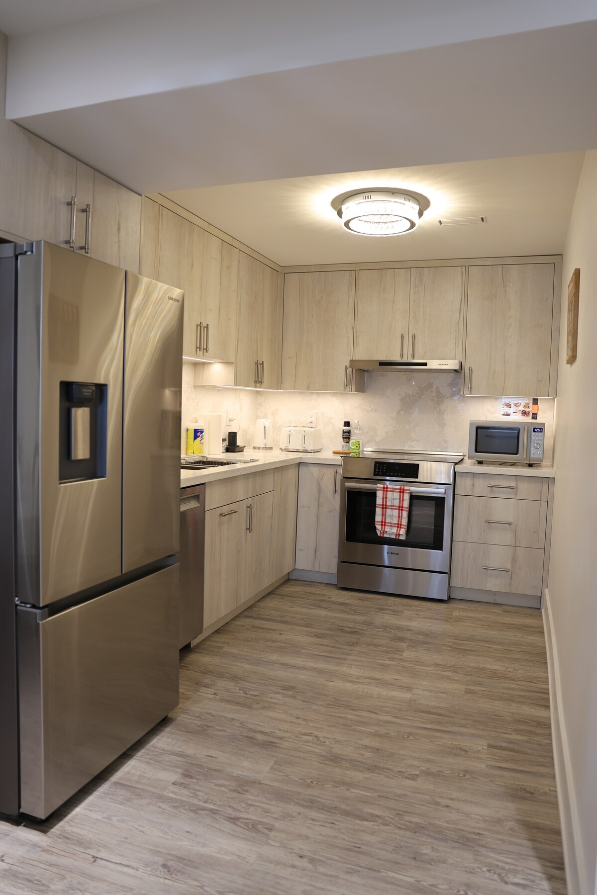 Up class stylish all inclusive two bedroom basement apartment with separate entrance! Extremely clean, bright, quite, safe, spacious, comfortable, in a very nice and friendly neighborhood. 3 GB/s unlimited WIFI internet, 55 inch high end smart Samsung TV, plus Netflix, Amazon Prime Video and Disney Plus subscriptions, makes it an island in the heaven for work or family retreat! Enjoy a well equipped modern kitchen for who loves cooking, and walking distance to shopping malls and restaurants!
