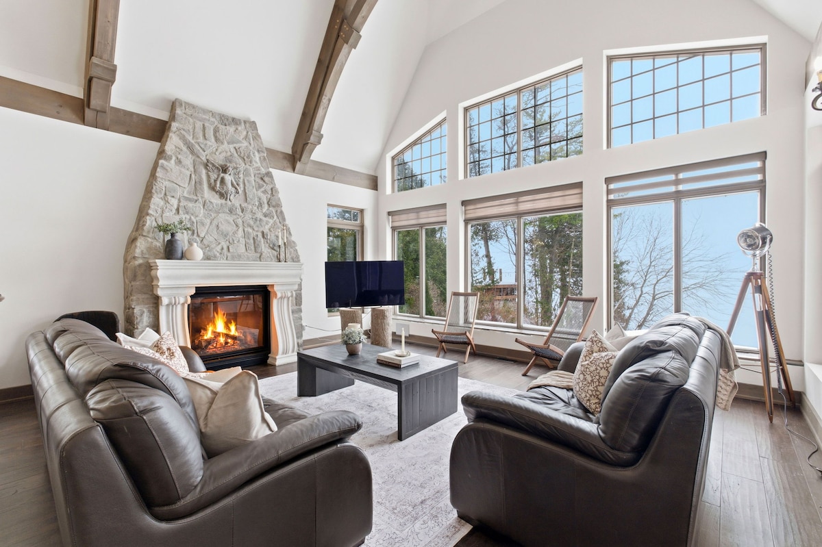Stunning five-bedroom waterfront home on Georgian Bay! Located in a quiet area with stunning views and amazing sunsets! In the summer, the lake is perfect for swimming, kayaking, paddle boarding or fishing! Just bring water shoes as there are some rocks and zebra muscles. Equipped with a hot tub overlooking the lake, this five-bedroom waterfront home is perfect for a summer or winter getaway! *Please note this cottage is Pet Free.