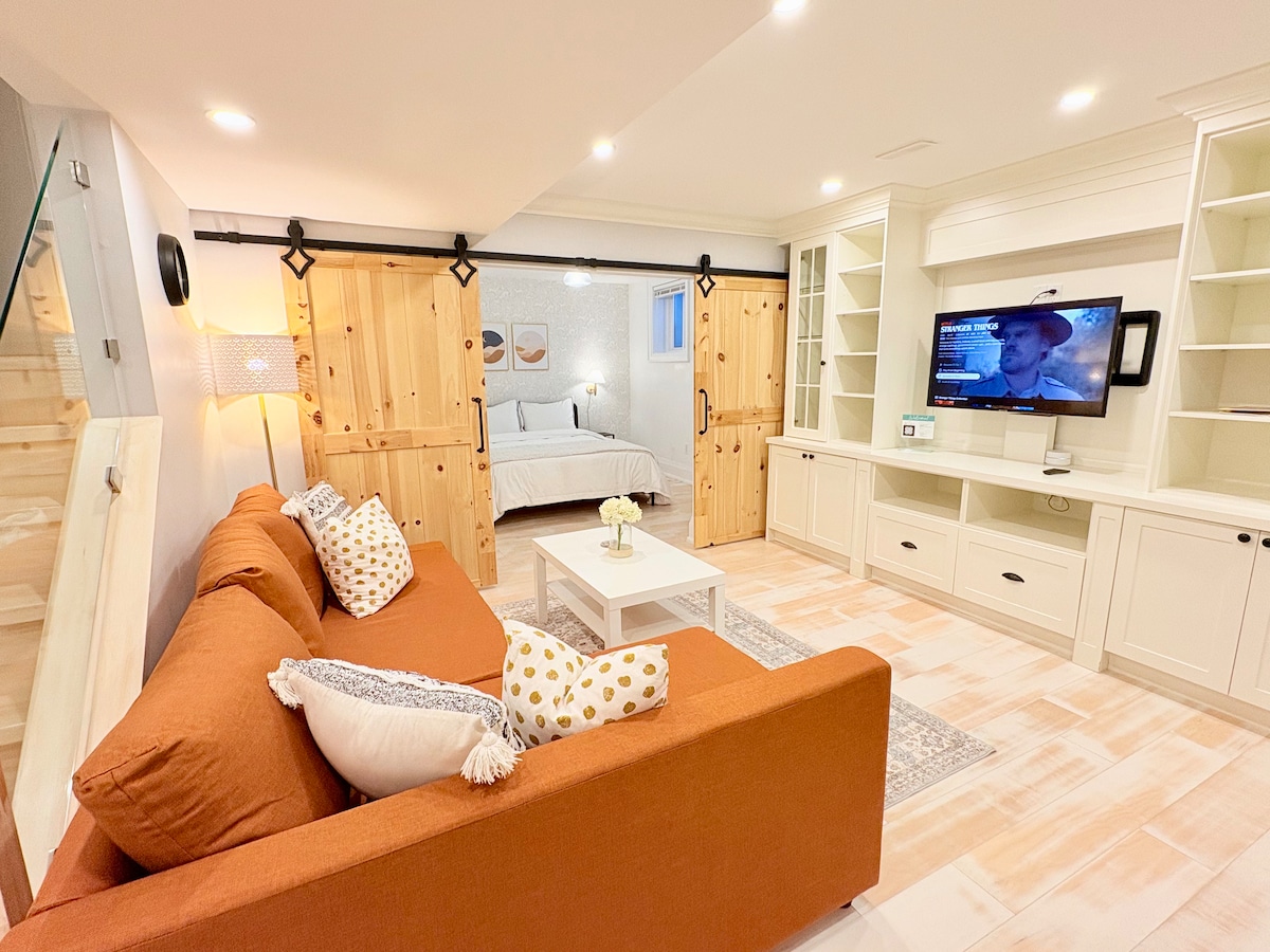 Make yourself at home in our cozy yet spacious basement suite. Just steps from Royal Victoria Hospital & Georgian College, Access to HWY 400 nearby, you're also minutes to downtown Barrie's scenic waterfront. A clean, modern space designed for convenience — ideal for short or long stays. Your cozy getaway awaits Key Highlights >In-suite laundry >Self-check in >Smart TV with Netflix, Youtube & PrimeVideo >Queen bed >Equiped kitchen with all necessary cooking utensils >Wifi extender for fast wifi