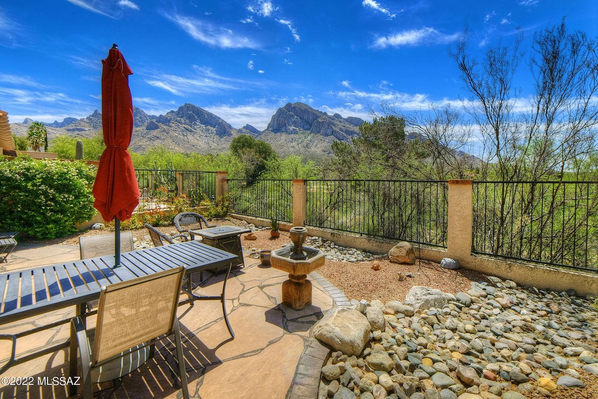 Big comfortable home with lots of light & personality. Heated Pool & spa (extra) all the comforts of home. Master suite features Jacuzzi tub, deck, & futon in the sitting room. Dining options include outdoors to watch the sunrise over the Catalina Mountains. Relax after adventuring in front of the big screen smart TV, enjoy provided games, videos or books, go for a late night swim, or sit around the fire pit & enjoy the stars, away from city lights. No unauthorized parties. Not a party rental!