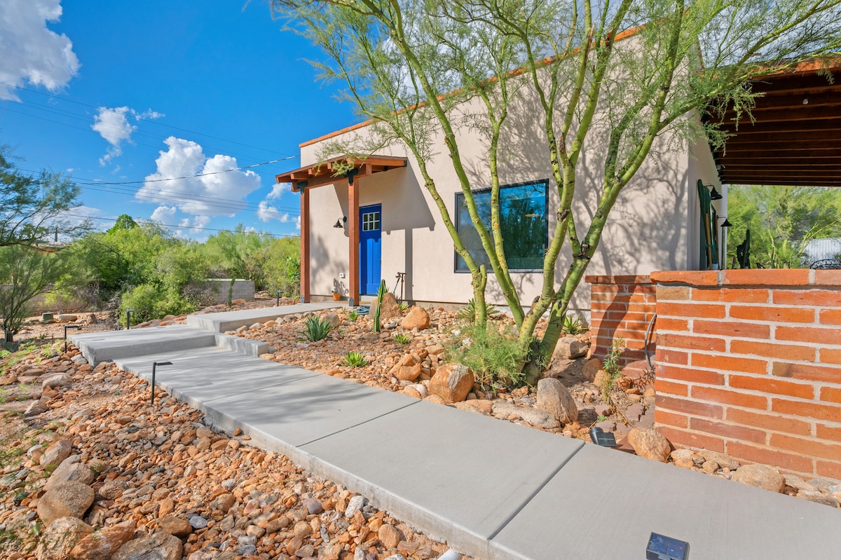 411sq ft private Casita just newly REMODELED! Sleeps up to 4. King feather bed & a pullout sleeper. Located just past a quaint garden where you can catch hummingbirds drinking. Private parking & entrance, just come and go. ASK ABOUT: Our other King Suite just feet away! Can sleep 2 more! Cool off in pool (rarely used by us), use outside patio (where cooking station is located, there's no kitchen in the casita). Min. from I-10 & stellar Tucson Biking Loop!!