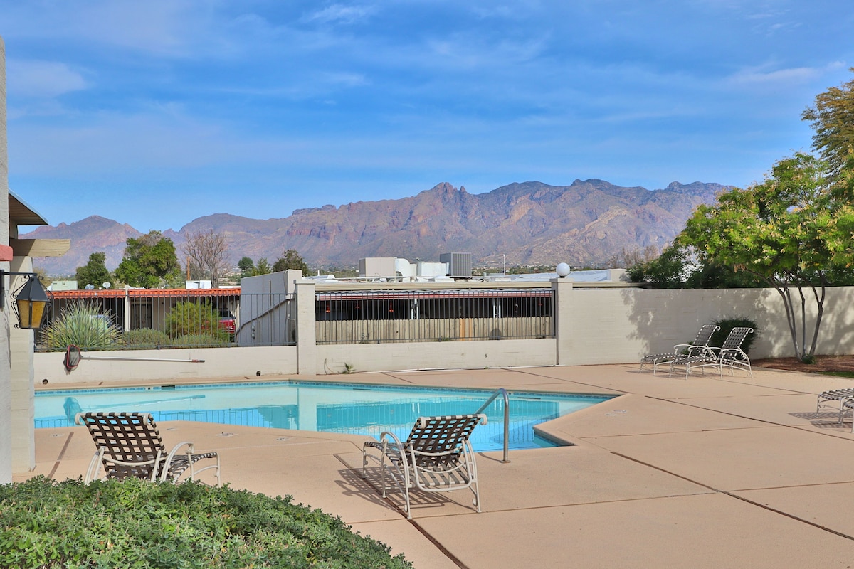 ✓ Primary suite w/ walk-in closet ✓ Fully equipped + stocked kitchen ✓ Carport for one car ✓ Community pool (unheated) ✓ Quiet complex 5 min → Udall Park 18 min → U of A 30 min → Mt Lemmon SAFETY DEPOSIT OR DAMAGE WAIVER: To preserve the condition of our property, a non-refundable Damage Waiver fee ($42.80) or a refundable Safety Deposit ($700) will be required after booking. The purchase will be completed via our Fig & Toast Boarding Pass and Enso Connect, an authorized Airbnb partner.