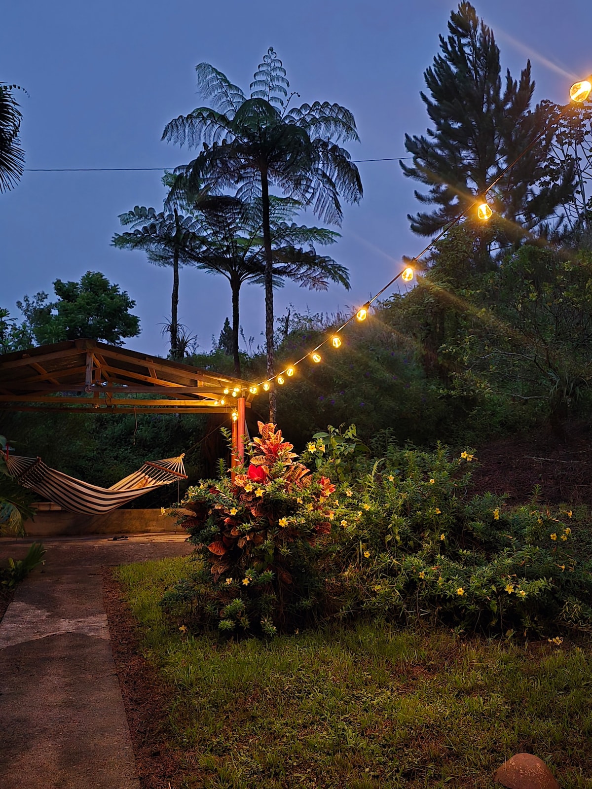 Disconnect in this spacious and serene space. With the nocturnal freshness that distinguishes the town of Orocovis, you will be able to have a commemorable retreat. At approximately 2,000 feet above the sea, we have a view from El Yunque to Vega Baja. You can also enjoy the view of the Central Cordillera, such as the Three Picachos. On a perfect night, you can even see the milky way, we suggest that you bring your telescope. Ideal for observing native and endemic birds of Puerto Rico.