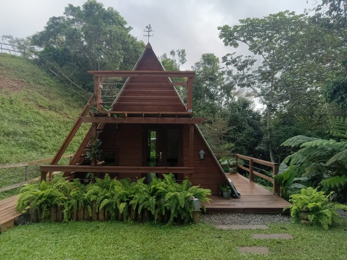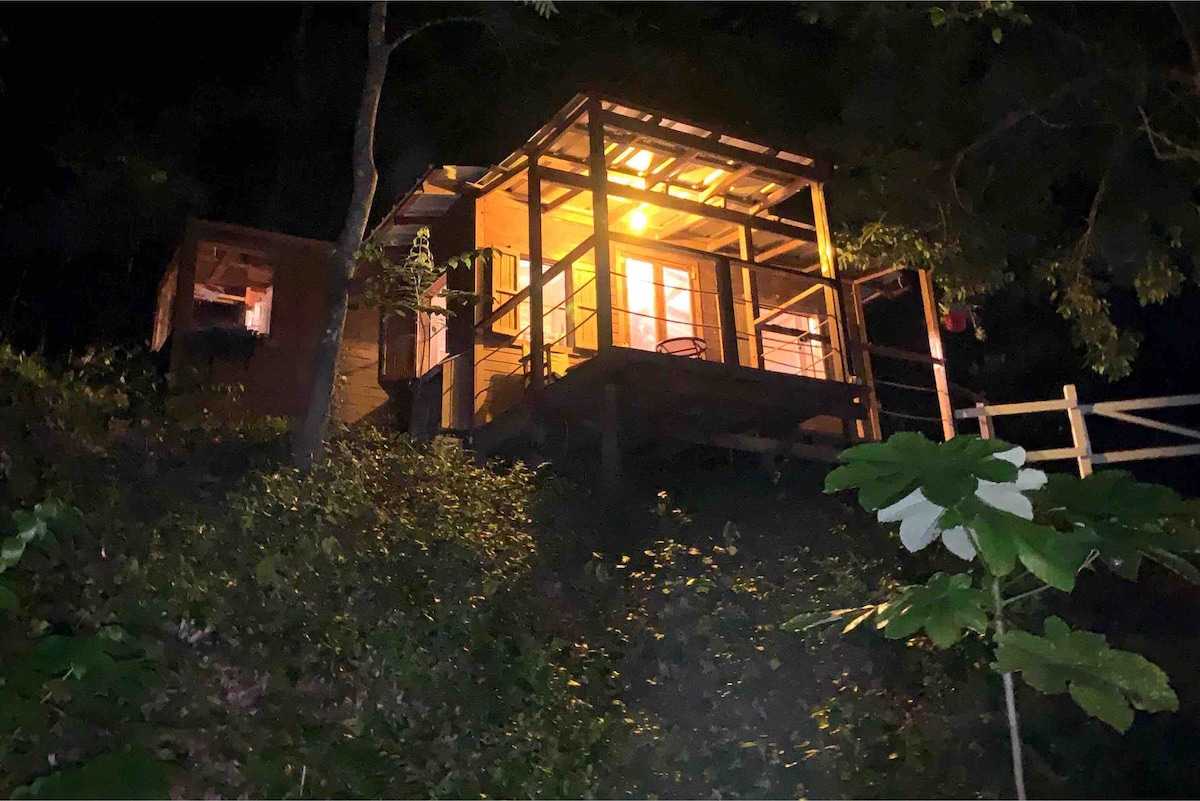 Relax in the mountains of Orocovis in this cozy cabin with private forest trails and a lookout point offering beautiful views for photos and enjoying the scenery. The cabin includes a fully equipped kitchen, small refrigerator, a full-size bed, outdoor shower and a fire pit area. Just minutes away from attractions like Toro Verde and local restaurants. The property features friendly farm animals that you can enjoy during your stay. Access is via a gravel road, adding a rustic touch to the place.
