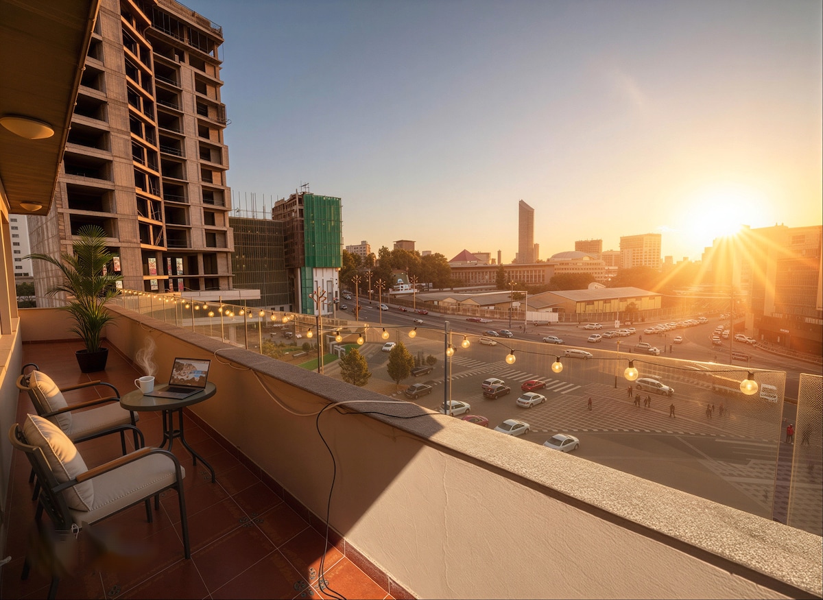 Incredible views, incredible staff and amazing facilities. Be a part of our brand new modern apartment hotel in the city center where you’re right next to some of the best restaurants, movie theatre and malls. You can either take a stroll at night and go to one of the best restaurants in the city or stay in a cook dinner in our high end kitchen. Get ready to experience addis living like no other place in the city. Only 10 min from airport with 24/7 security
