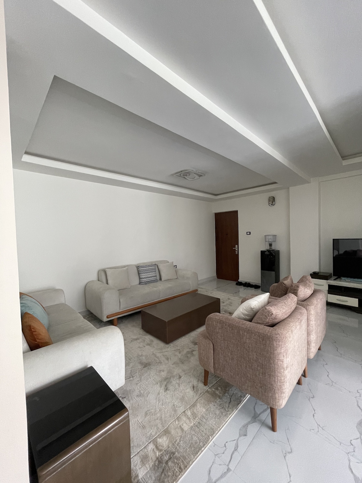 Enjoy your stay in Addis Ababa at this peaceful and centrally-located place. This is a new, fully and nicely furnished unit. The apartment building have all you need from grocery to pharmacy. There are 3 beds and one sofa bed. You can get an optional cleaning and maid service.