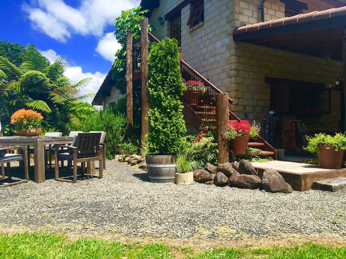 This studio-sized cabin is self-contained and approximately 100 meters from the main house. It has a very comfortable Queen-size bed with an electric blanket for colder months. A spacious deck with waterfall views and walnut trees compliments the cabin. It is situated on a 20-acre rural property, with a 20-minute drive to downtown Tauranga and a 10-minute drive to Bethlehem and Tauriko Crossing, offering dining and shopping options. Continental breakfast is included. Uber Eats also delivers!