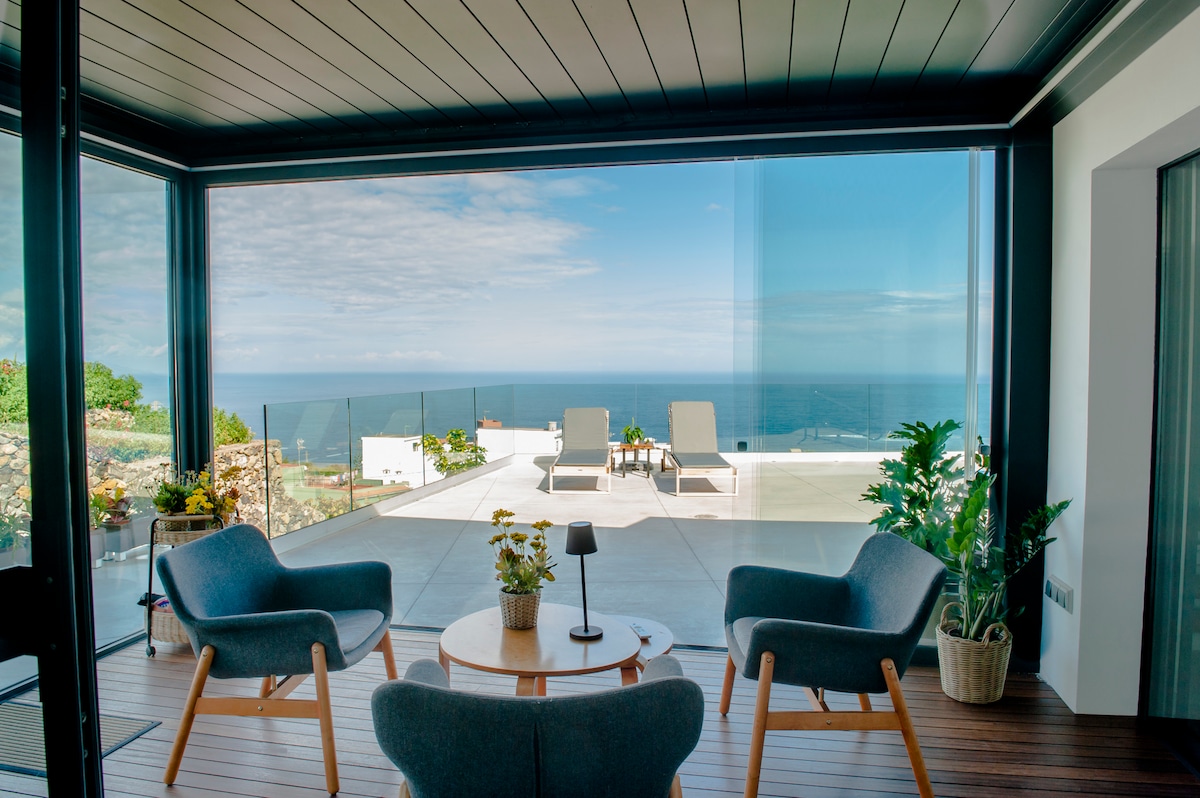 The house "El Mar" (The Sea), was given this name due to its impressive location on the top of a small cliff where it stands as an unbeatable balcony over the never ending day and night spectacular changes of the Atlantic ocean. Placed in the north cost of Tenerife, as part of a small private housing development of only 12 houses, it´s surrounded by banana plantations, excepcional views protected natural area of La Rambla Castro, where canarian nature and seashore can be enjoyed.