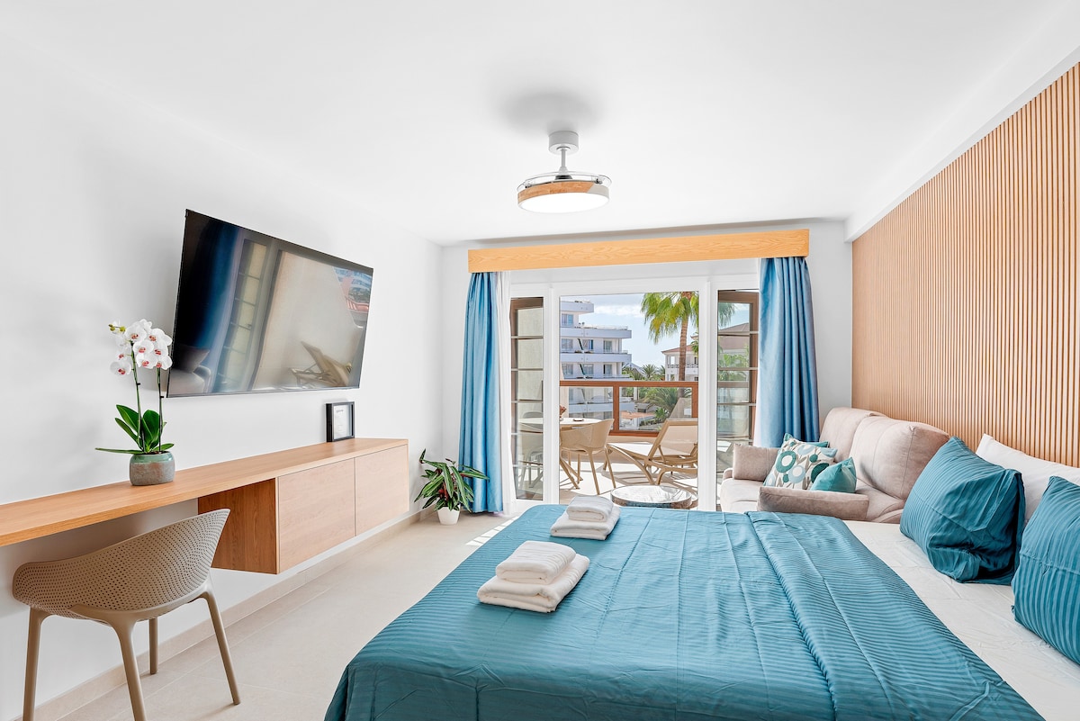 阳光明媚、装修一新的单间公寓,可欣赏拉斯美洲的泳池景观