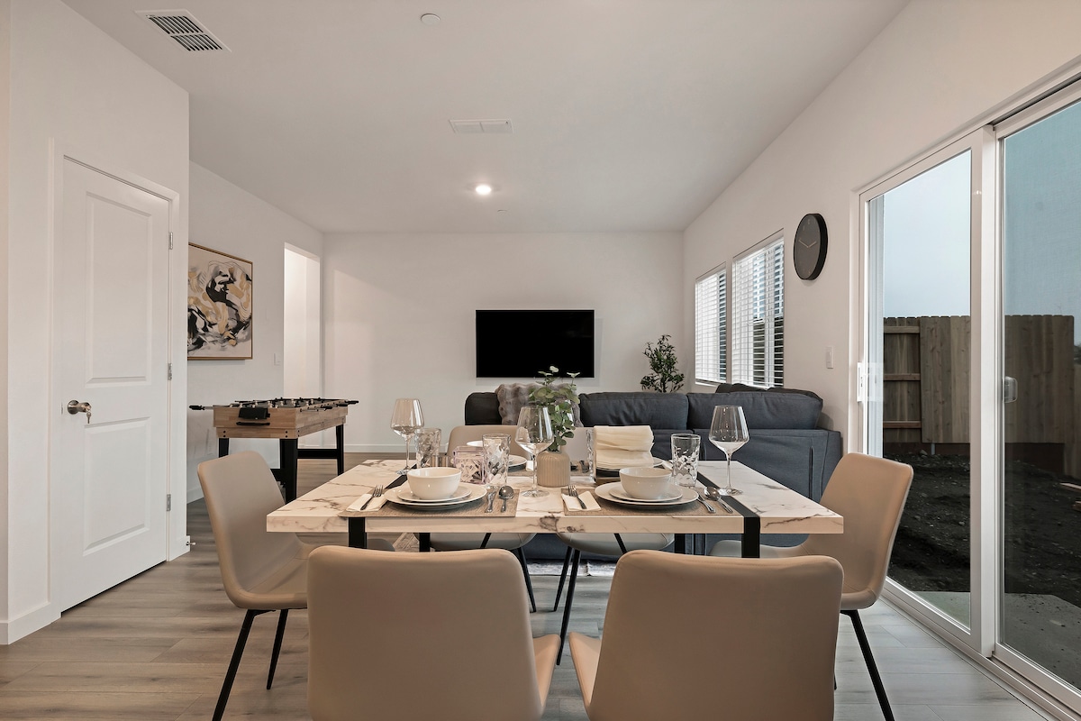 Brand new home in a quiet and nice neighborhood. This home has many custom features throughout with all brand new furniture and bedding. One bedroom has a queen bed with 55" TV. the other bedroom has a double bed with a 55" TV. This house has a large custom kitchen with granite counters and all stainless steel appliances. The garage has polished concrete floors with a 70" TV along with arcade games and a beverage fridge.