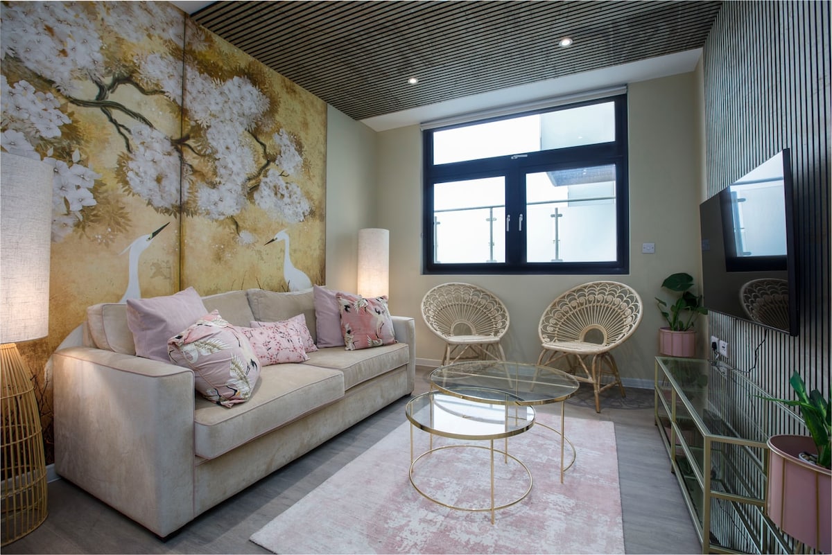 Our themed 73 sqm 1-bedroom apartment can host up to 4 people. Enjoy modern furnishings, a fully equipped kitchen with a washing machine and dishwasher, a spacious bathroom with a shower, a comfy Super-King bed and a sofa bed. Free access to the shared GYM and WORKSPACE. Located in a building with a lift, take advantage of free parking and super-fast WiFi. It is just minutes from Orpington Train Station, with easy access to London Bridge. POTENTIAL FOR NOISE, READ BELOW.