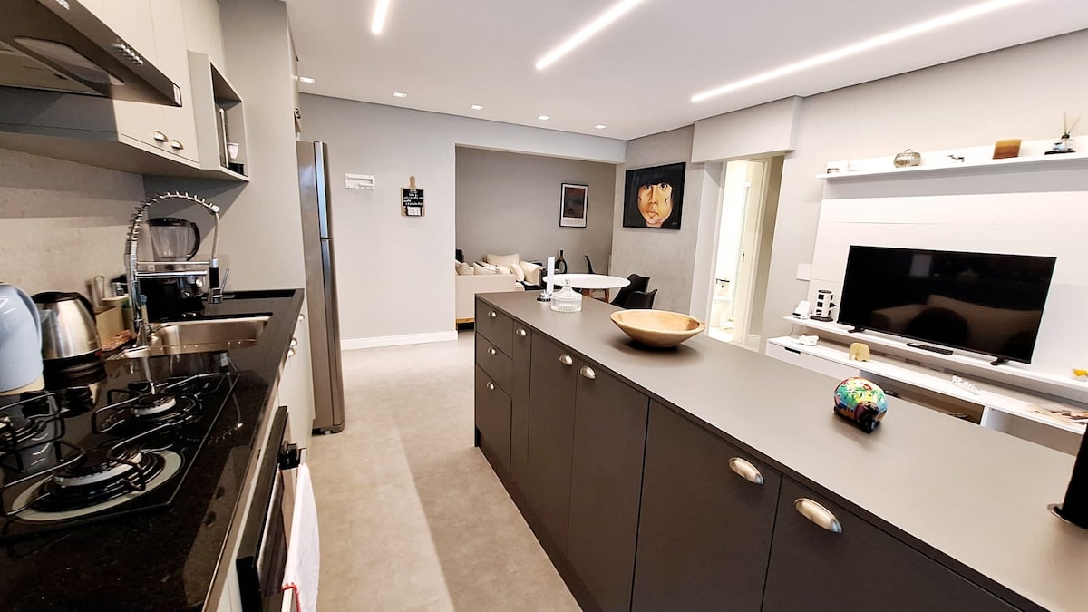1 Dormitorio, Sala, Cozinha e banheiro, próximo a todo o comércio , 3 minutos de caminhada até a praia, Wifi Vivo Fibra 200 MB. Não fornecemos roupas de cama e banho. Prédio seguro, com portaria 24 horas, câmeras e portões elétricos. Filtro central (agua filtrada em todas as torneiras e chuveiro). 1 vaga de garagem rotativa (estaciona na vaga que estiver disponível) . Deixe seu carro na garagem e faça tudo a pé.